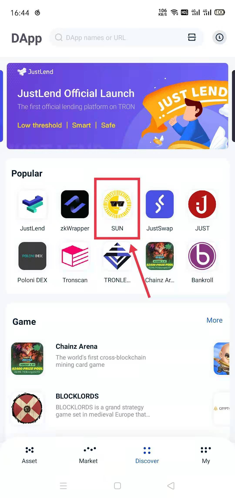 1. Войдите в SUN.io в вкладке “Discovery”.
