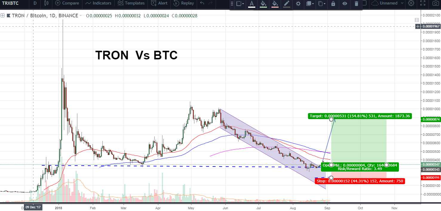 Beginning of september very good for TRON as goes out of discendnding channel,