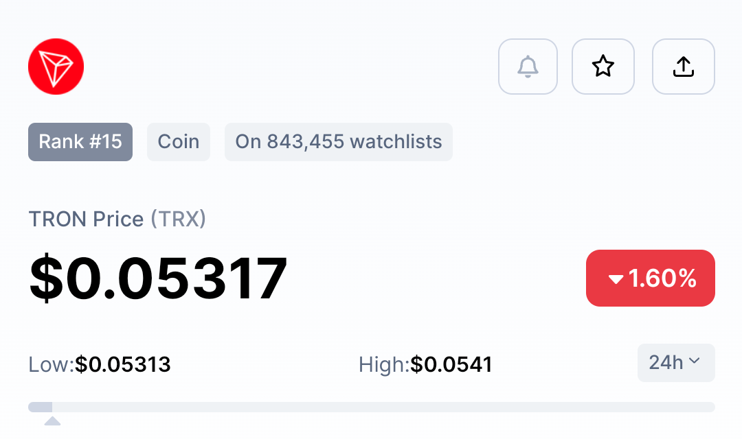 Tron Update last 24 hourcrotamition (69)in #tronupdates • 3 years ago Tron market analysis for the last 24 hours. TRON price today is $0.053165 USD with a 24-hour trading volume of $165,649,007 USD. TRON is down 1.60% in the last 24 hours. Thank you all for reading the article so carefully. Everyone pray for me.