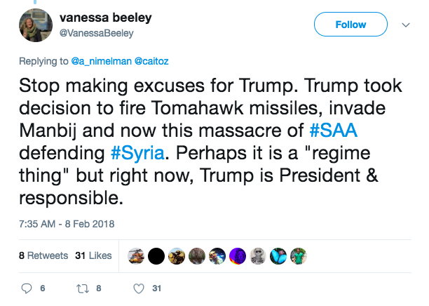 As things get even uglier in Syria I’m seeing some Trump supporters struggling to justify or dismiss the completely indefensible acts of human butchery that this administration has been inflicting upon that country. They’re arguments I’ve seen recycled in the MAGA crowd every time news breaks about the president once again continuing the reprehensible neoconservative policies of his predecessors and doing the exact opposite of what he pledged to do on the campaign trail, and I thought I’d like to address a few of them here.