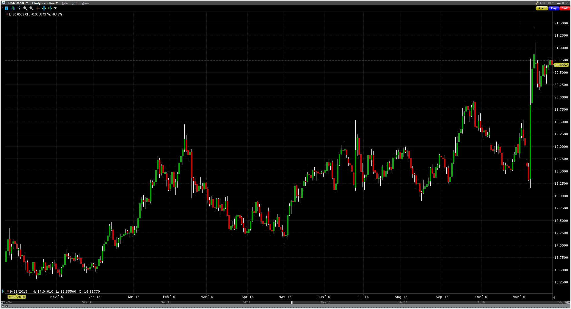 Below are charts of the Mexican Peso and EWM, to show the affect the election had on them.