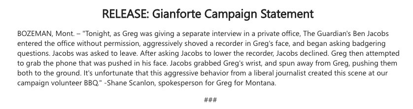 OMG. Here's the audio of the incident. Greg Gianforte just BODYSLAMMED a reporter. #FlipThe406 pic.twitter.com/MW7P8dJDjb