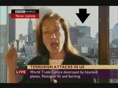 For example, think again about that BBC reporter Jane Standley telling us that WTC7 has fallen with the camera shot carefully framed to show us WTC7 still standing right over her left shoulder, exhibiting psychic foreknowledge of an event that had not happened yet. Do you really think that was a "blooper?" You're a fool if you do. It wasn't careless. It was a deliberate mistake. They want us to know. They need us to know. It was important. The chances of it being a mistake are too remote to even consider. That camera frame had to be carefully arranged to reach that result at that exact moment. Why did they have show the view out of the window in her background exactly positioned showing WTC7 at all? Why did they position her head just slightly to the right of center to allow us to view WTC7 over her shoulder? That's hard. That takes effort. How much more obvious did they have to make it? Stanley Kubrick himself couldn't have done a better job of direction and editing. And THEN pointing out it was WTC7 we are seeing just to make sure
