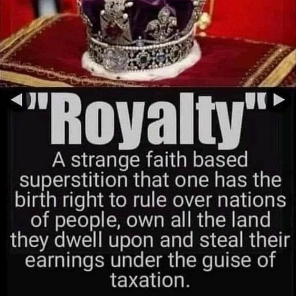As you can probably tell by the title alone this is about the charade known as the "monarchy" - Mon meaning ONE and archy/arkhon meaning RULER, where a guy sits on a thrown and claims to have the inherent RIGHT to rule over millions of people just because, and still to this day many people believe in this theatre and even lose it if you dont join in with the cheering of the new mascot for the British corp.