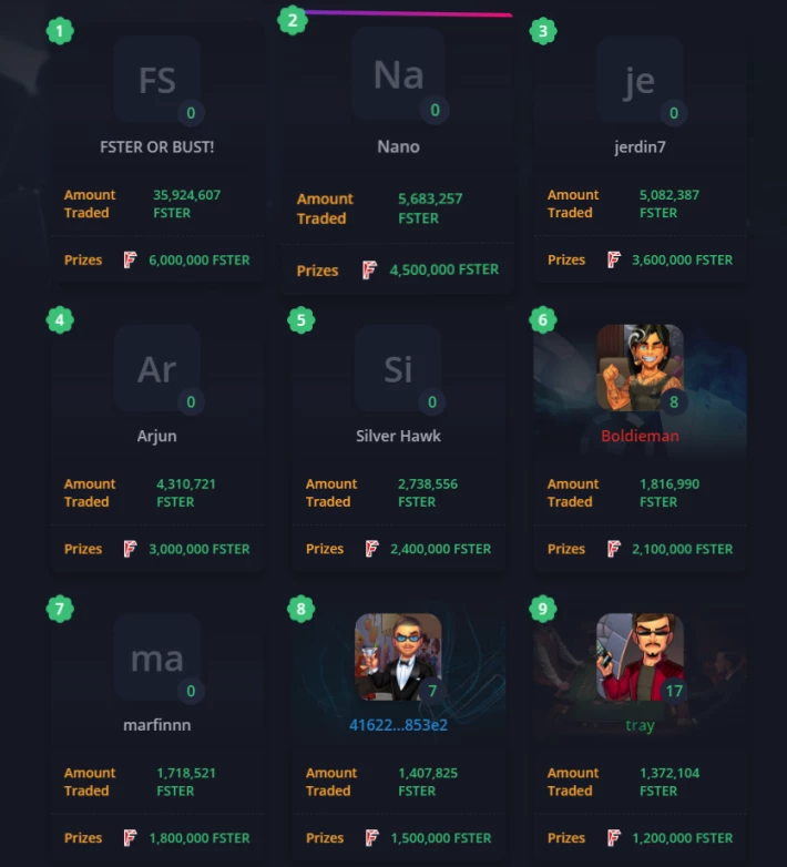 Highest buy volume on the FSTER-TRX pair wins top prize!