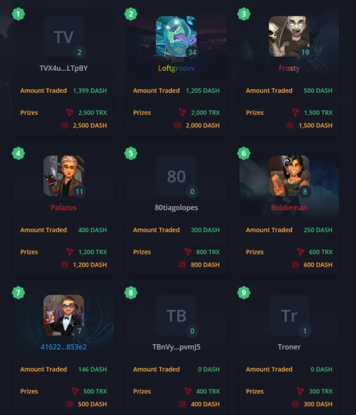 Highest buy volume on the DASH-TRX pair wins top prize!