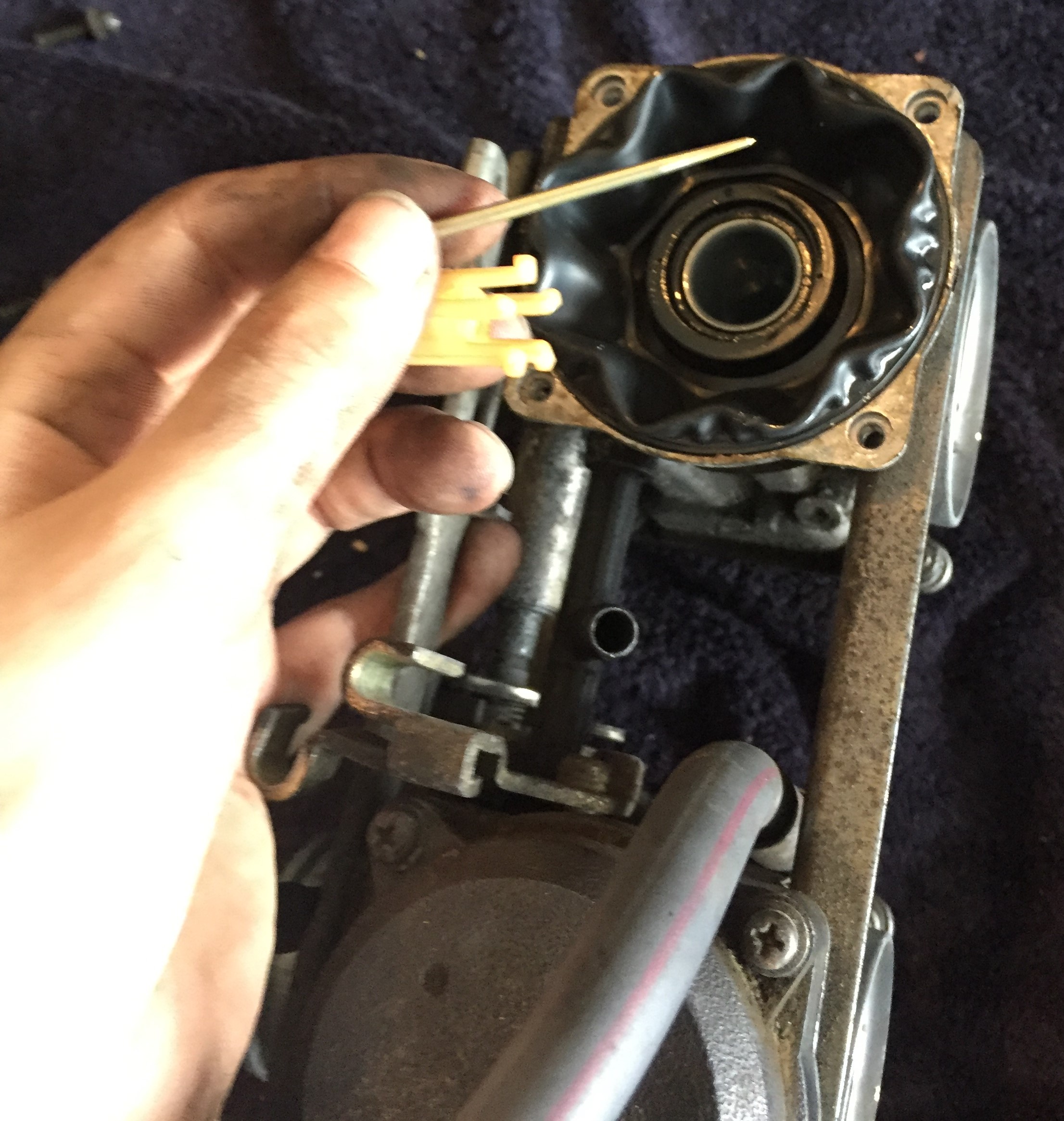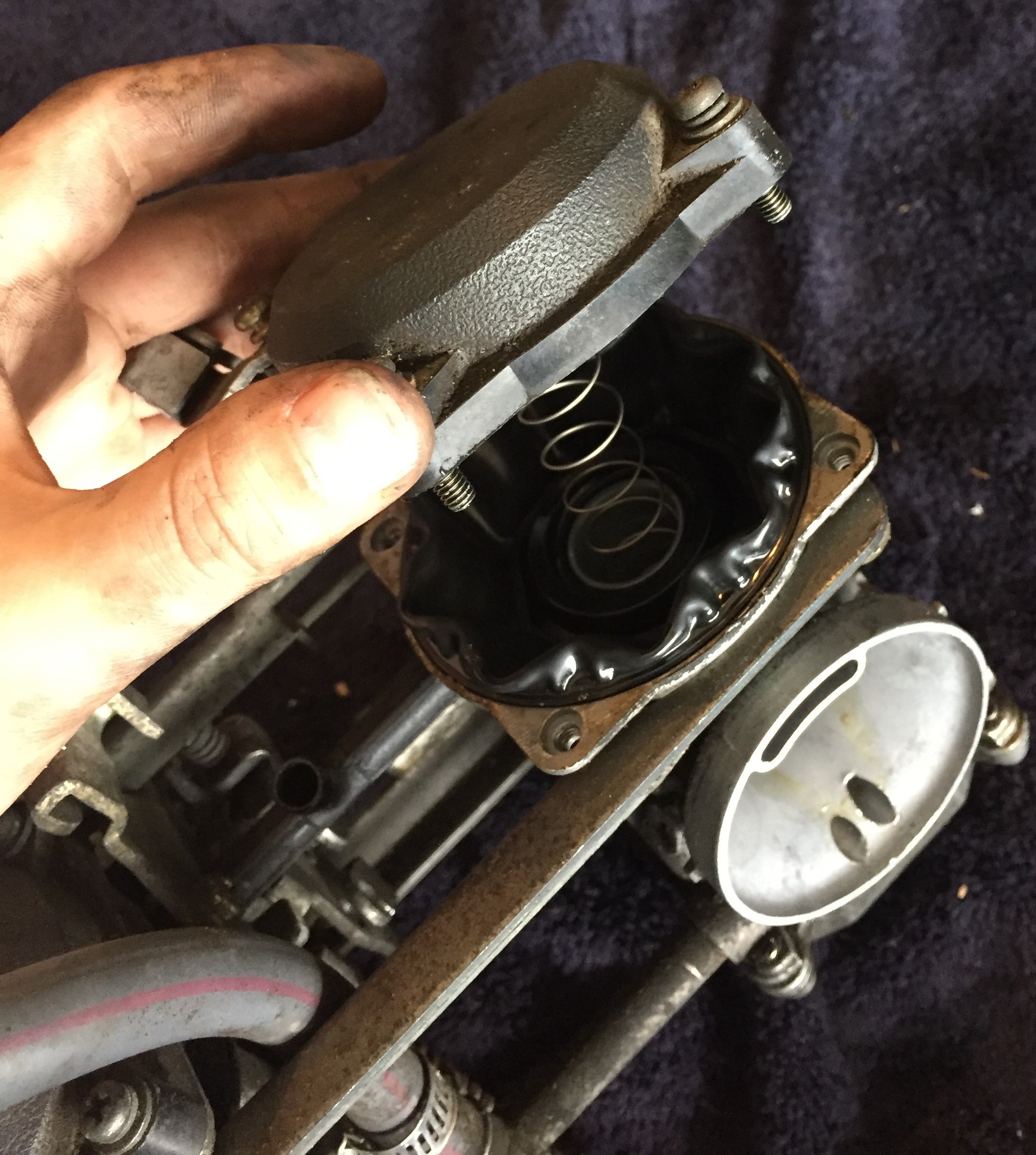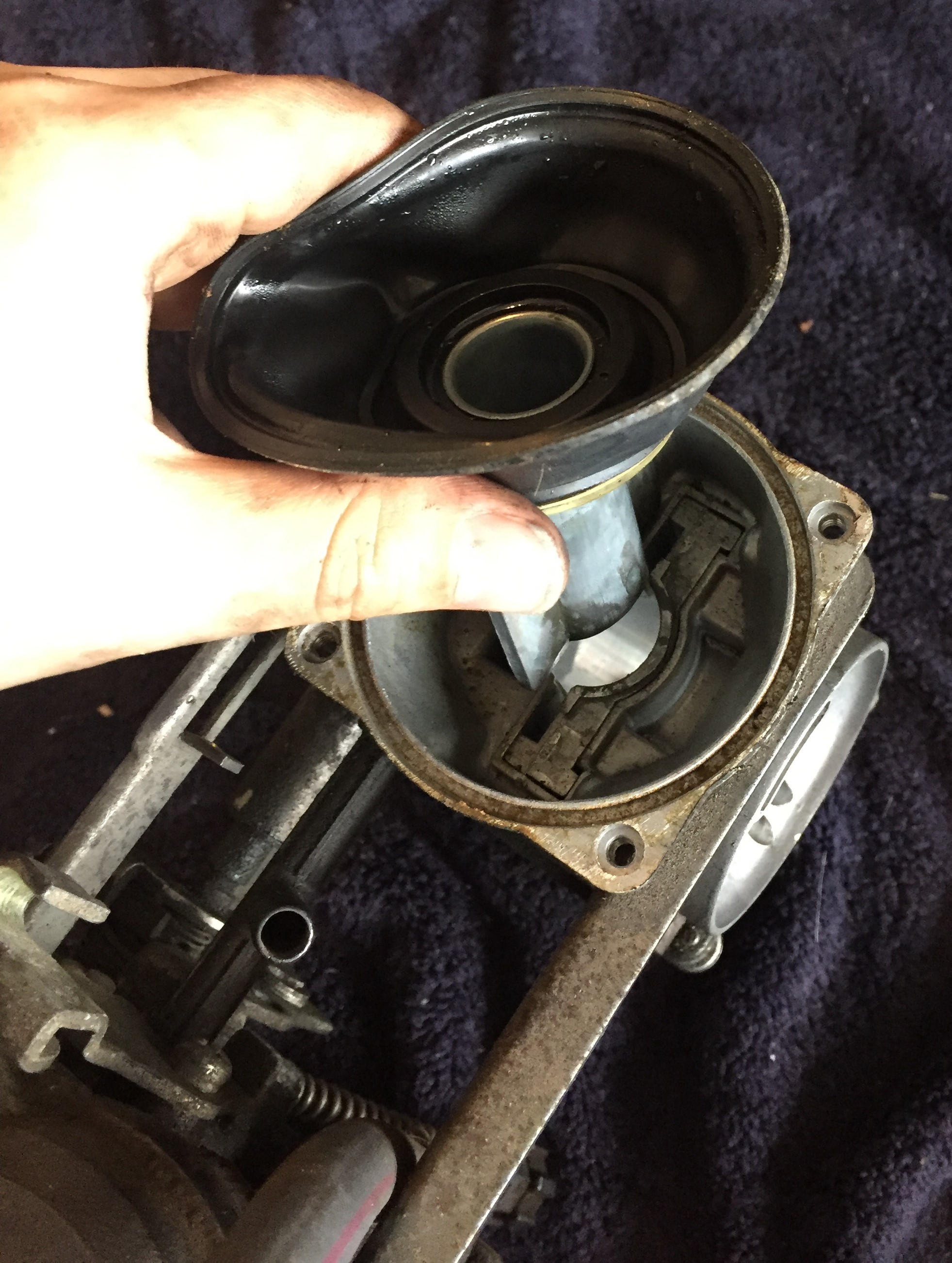 I noticed a problem with the left carburetor when I put the diaphragm back into the pocket. It's a little loose, a little stretched. In the near future I should order a new diaphragm, or a pair of new diaphragms for my bike. This will result in a better mechanical experience and, most likely, I won't need to clean the dual carbs again so soon.
