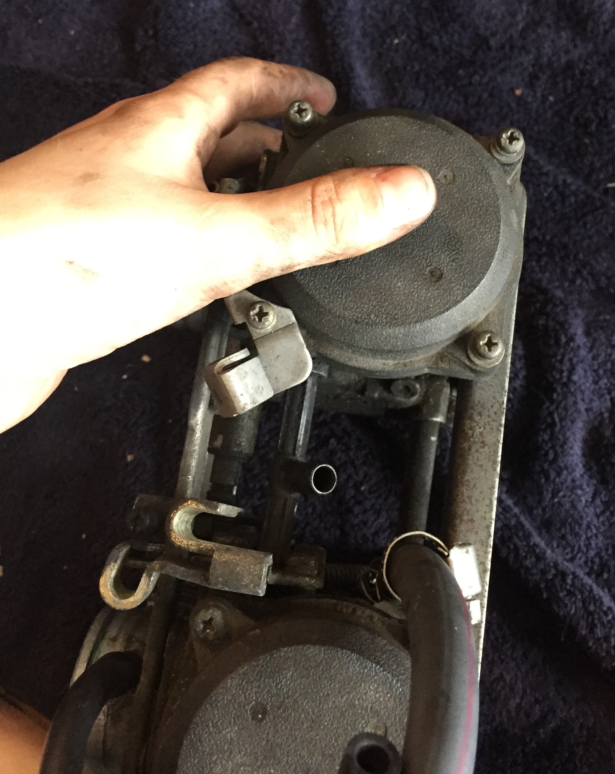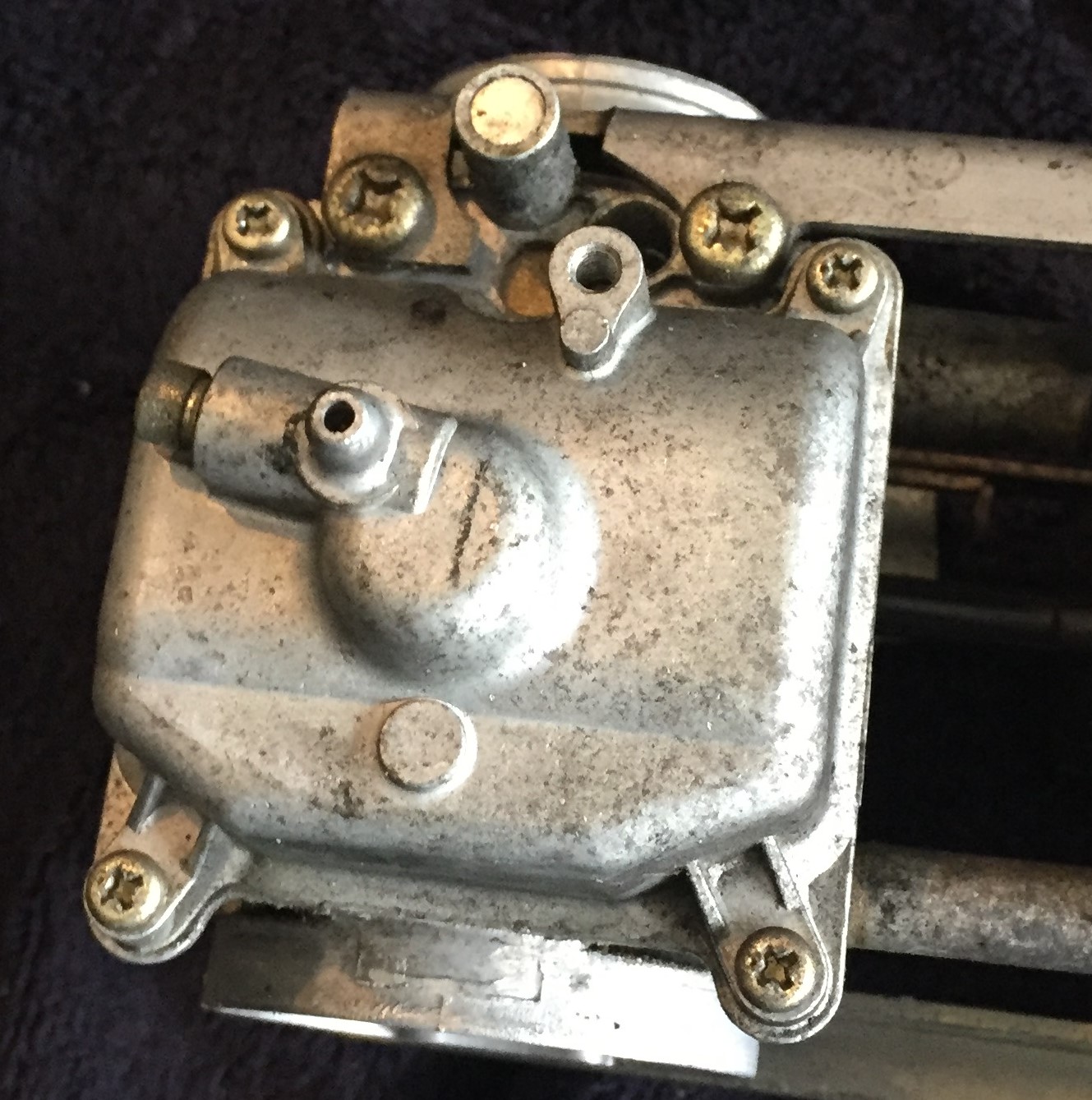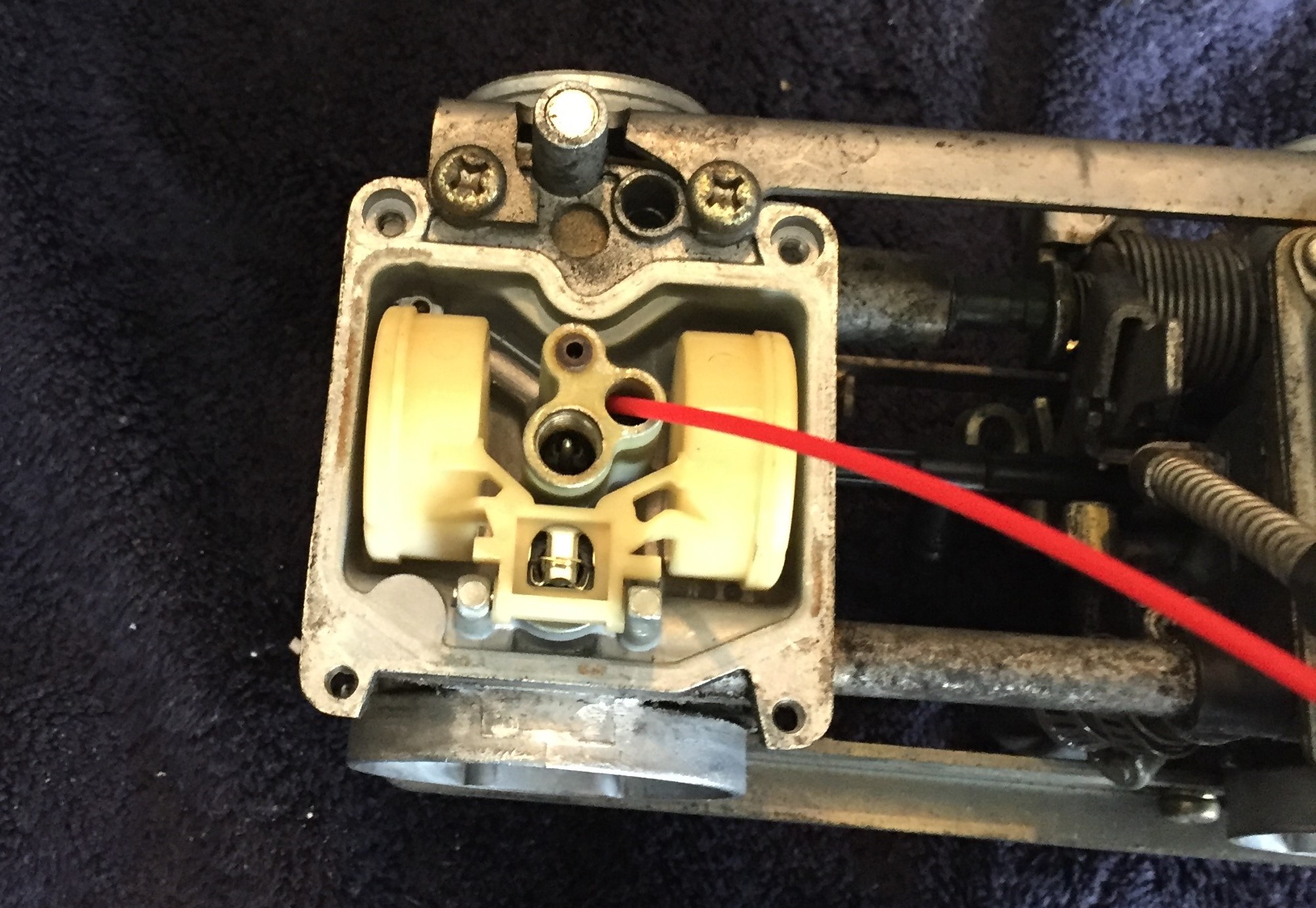 The below image is a top-down view of the open carburetor. Isn't it pretty? It's like a rubber flower.