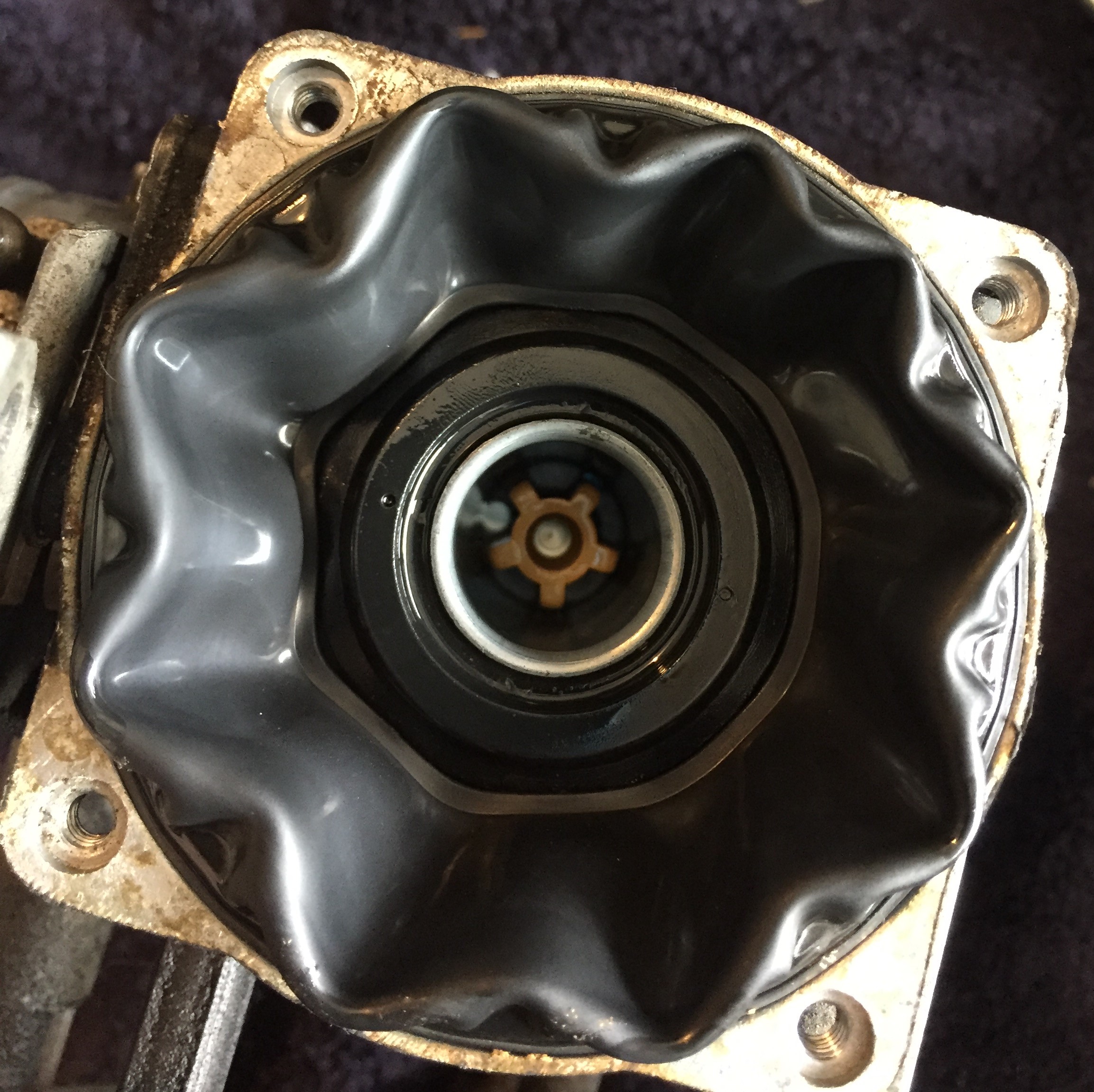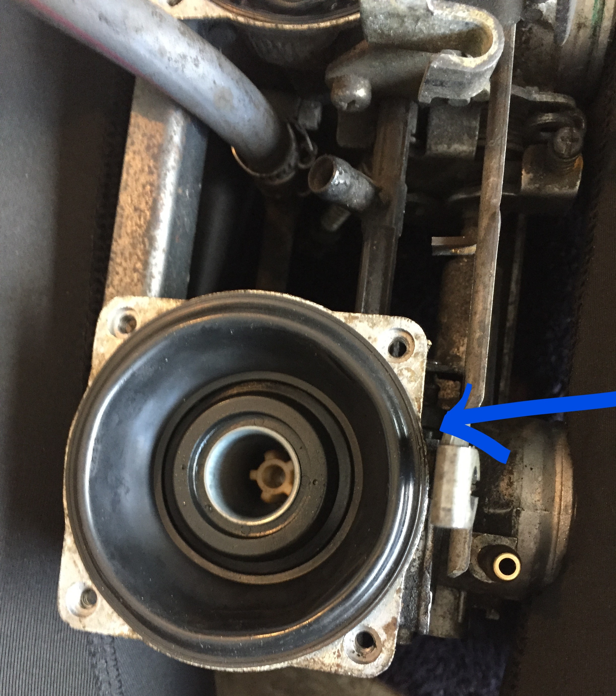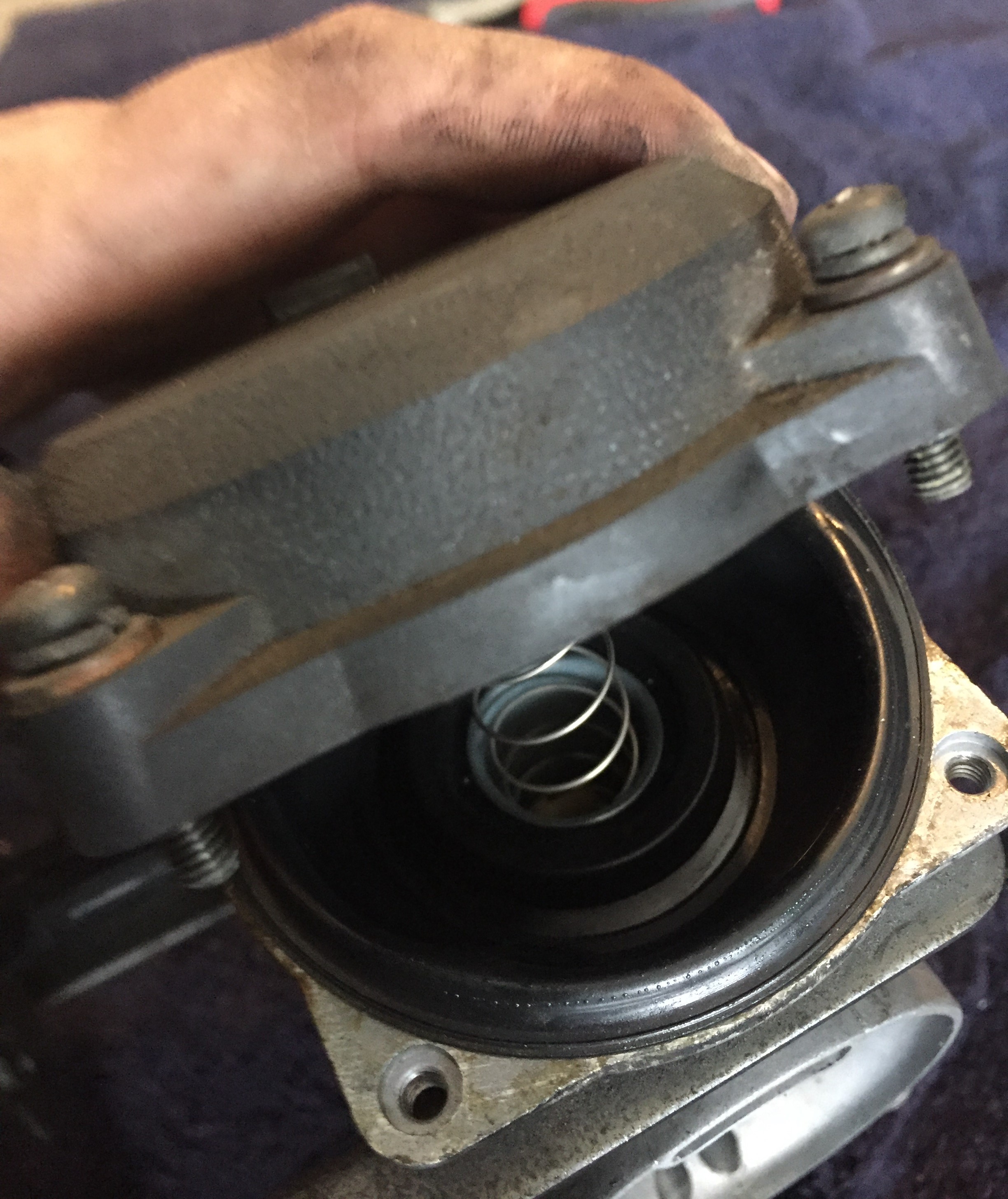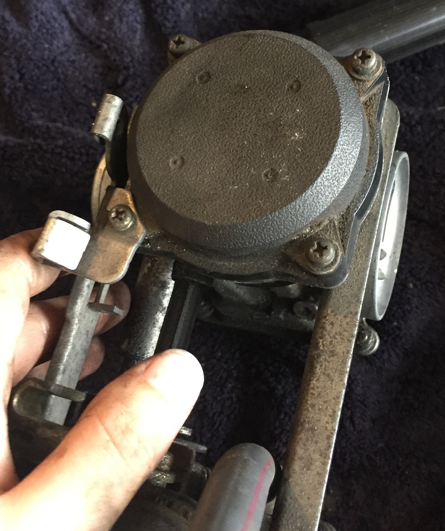 The below image is a top-down view of the open carburetor. Isn't it pretty? It's like a rubber flower.