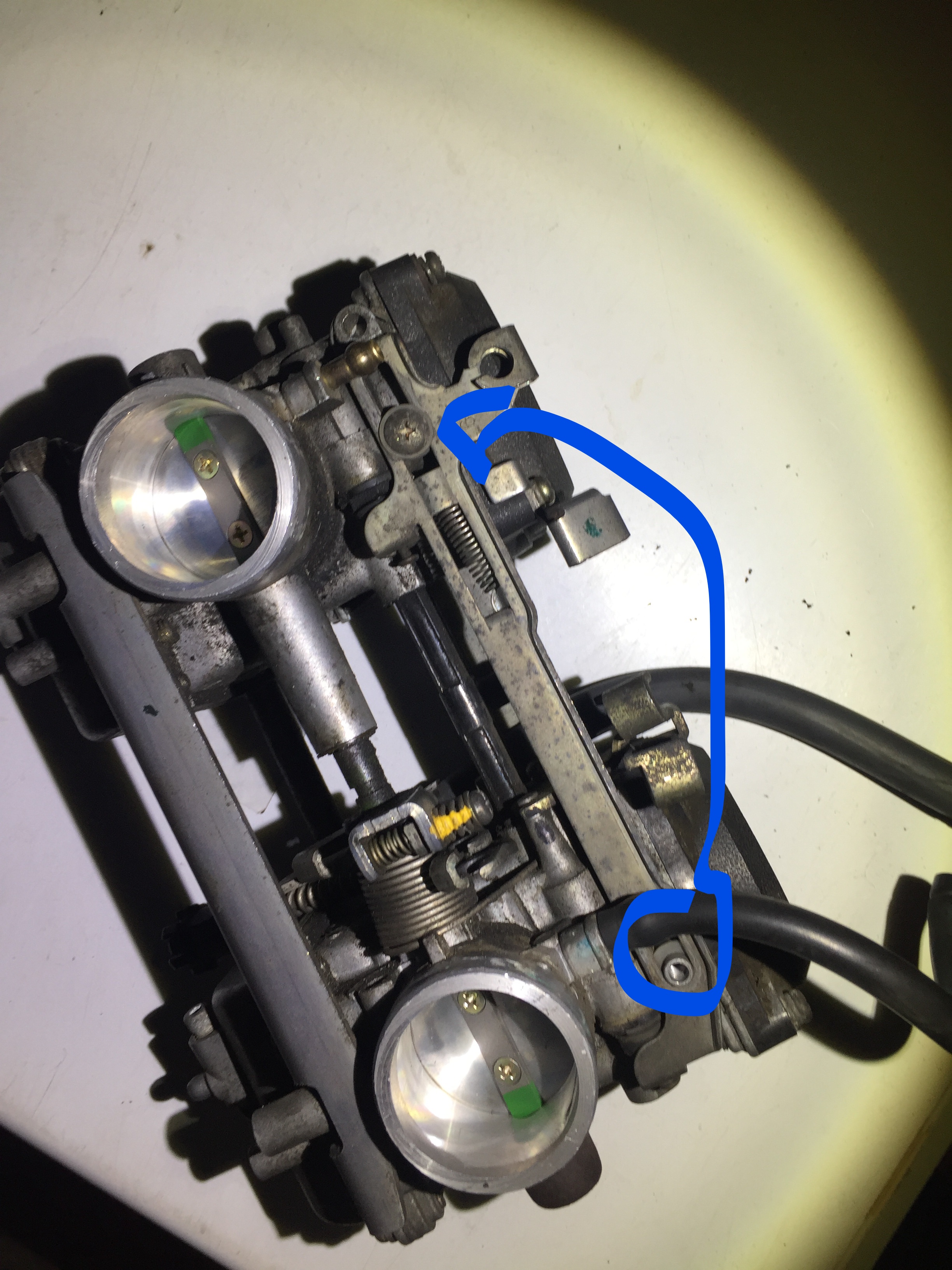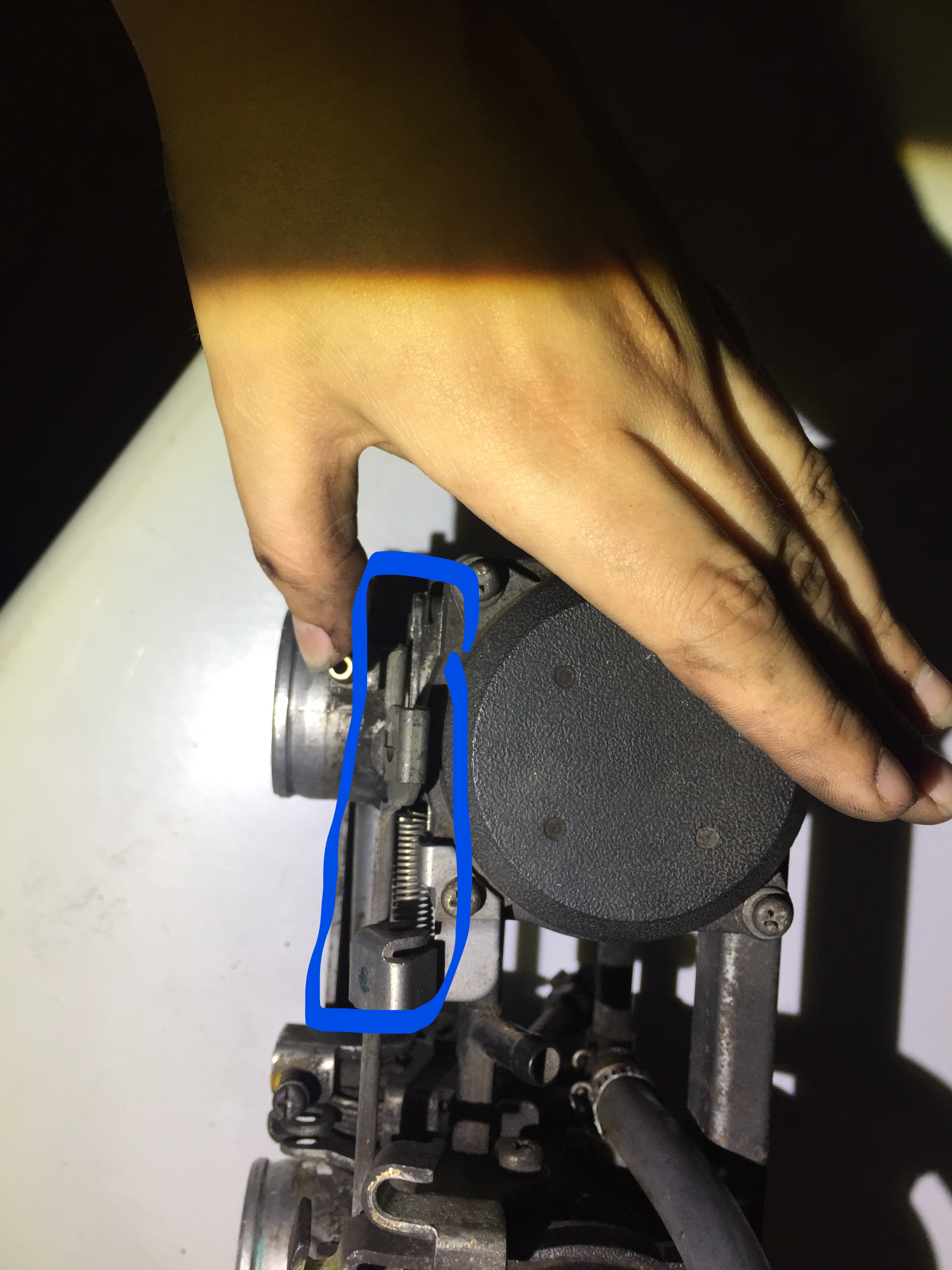 Here's an image to kind of help defend myself on why it took me forty-five minutes to identify the spring and determine where it goes. It's in a spot that is not visible in most online images of carburetor arrangements for my model of bike.