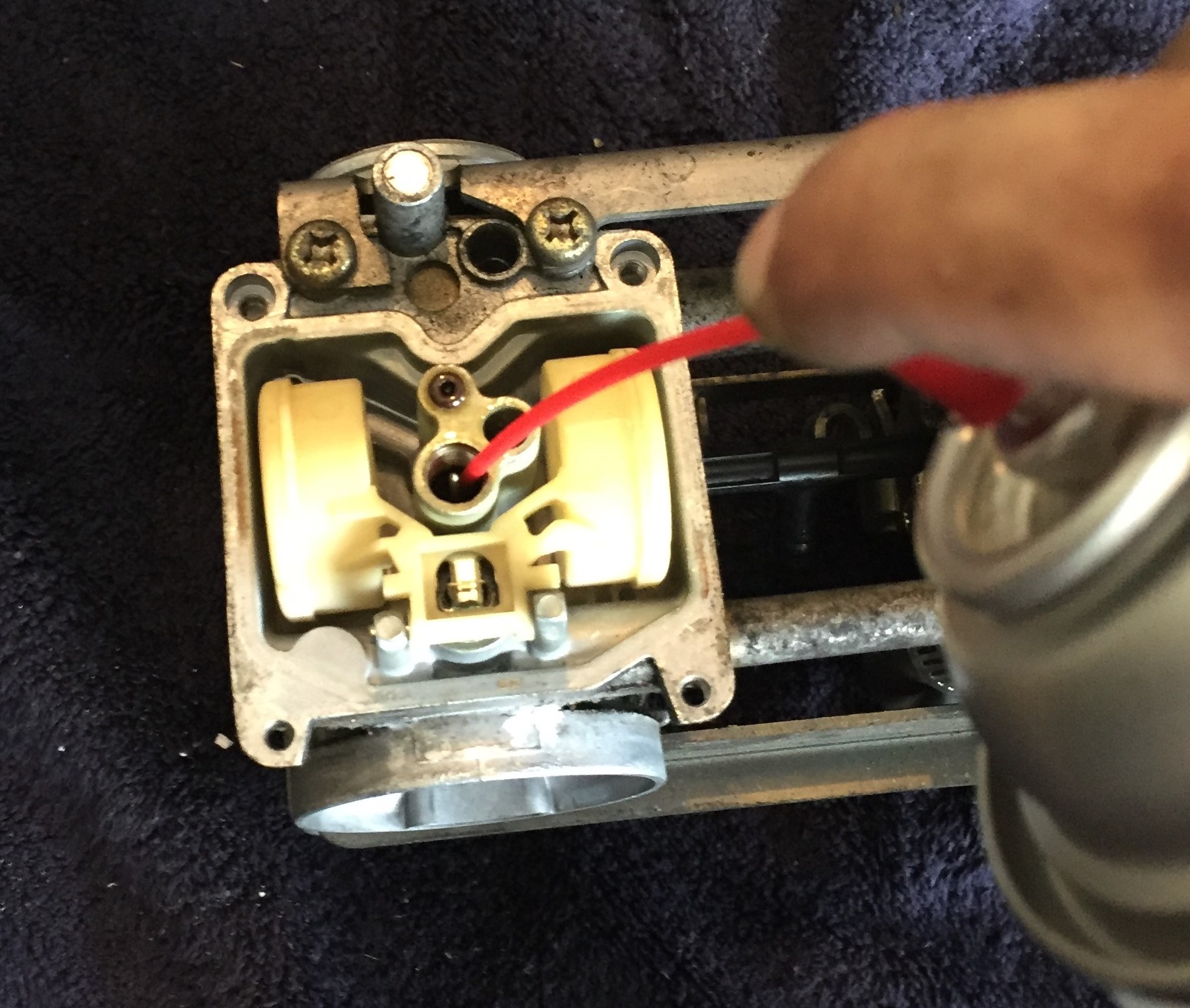 I did a thorough spray-down of the pocket the diaphragm sits in. I also accidentally sprayed myself in the eyes with the carb cleaner. Don't ask.