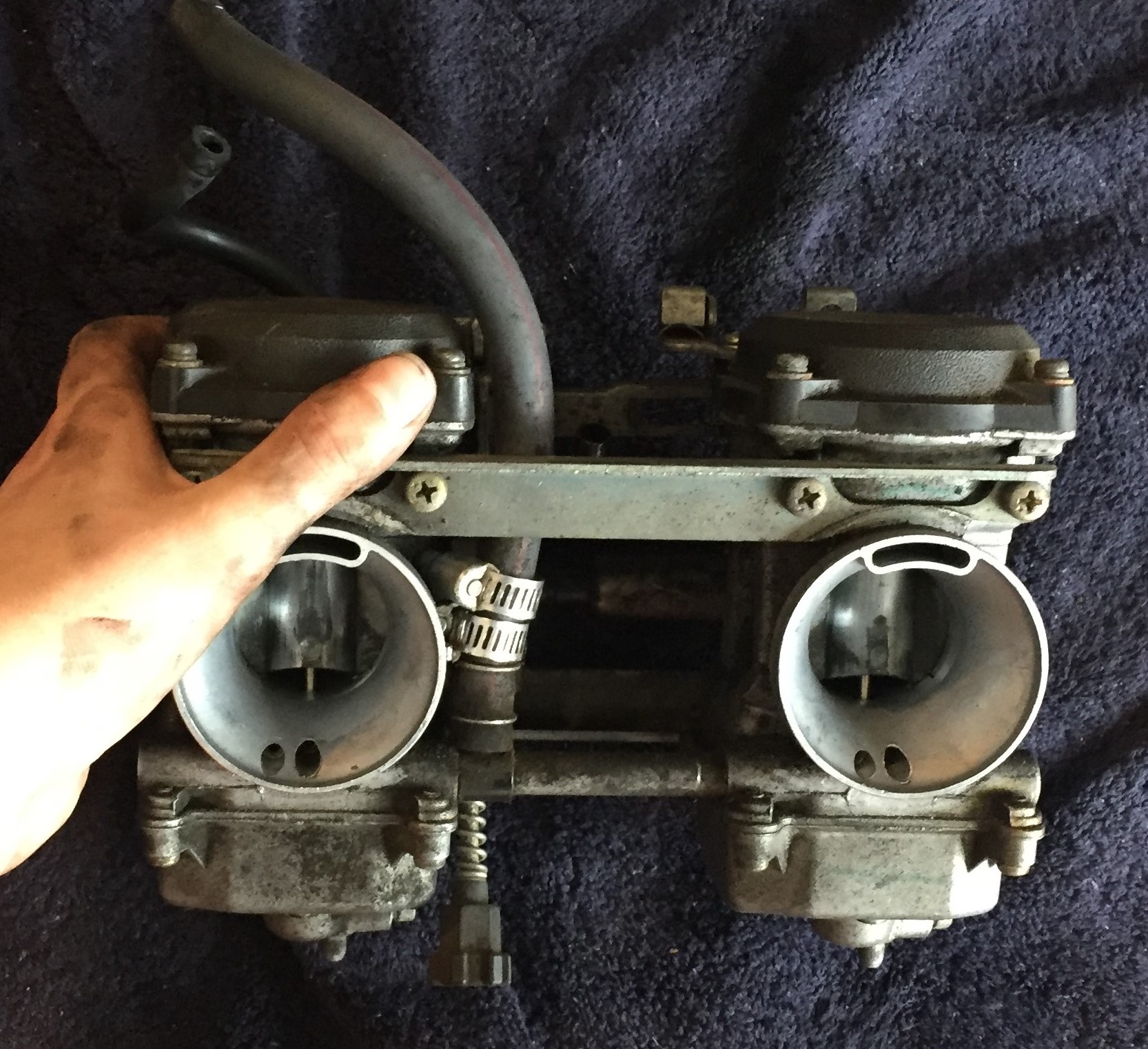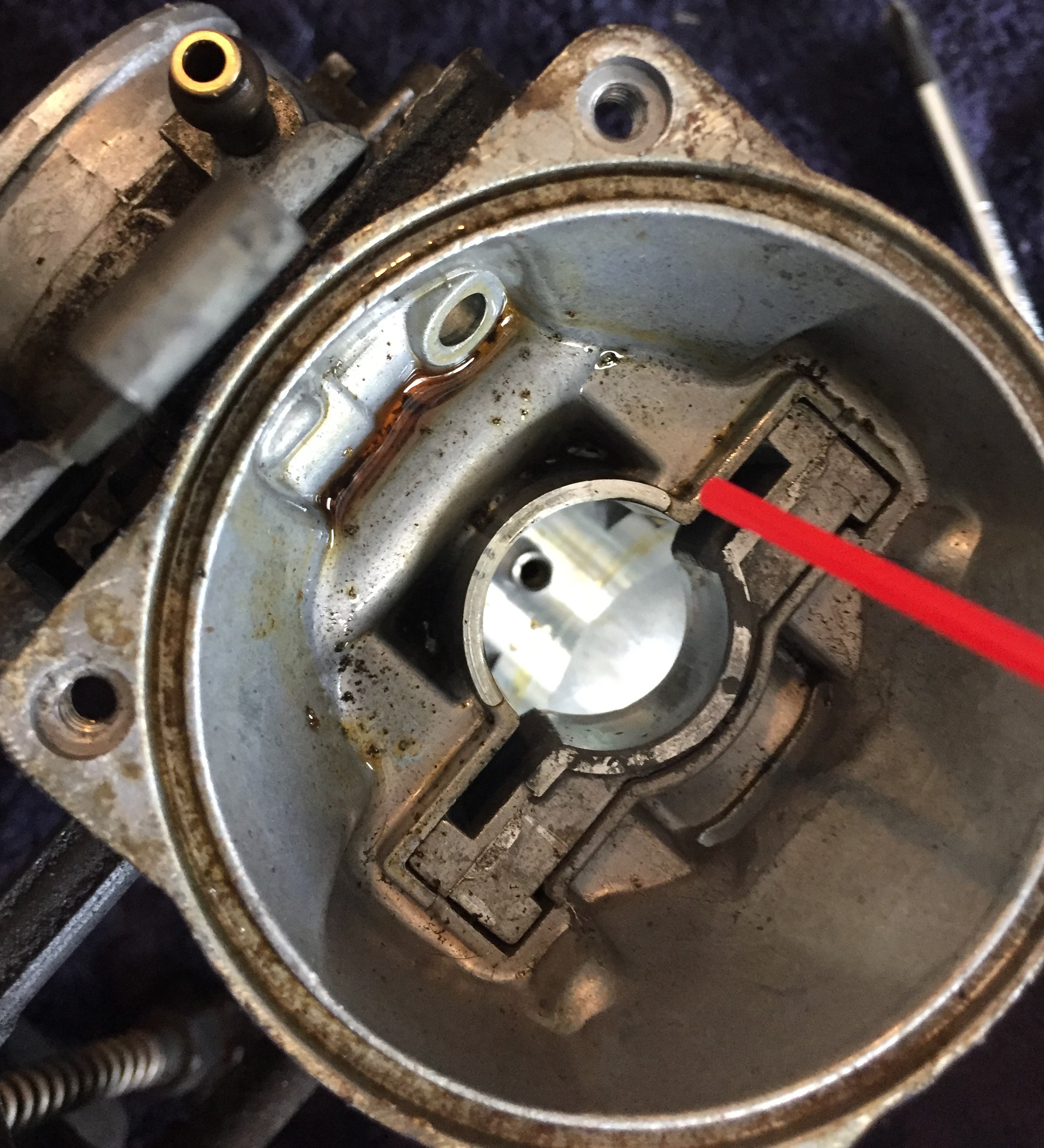 The right carburetor jet cleaning went smoothly. When i opened and disassembled the top, I noticed the tip of the needle was particularly dirty and took an extra minute cleaning it. It really didn't want to get its act together.