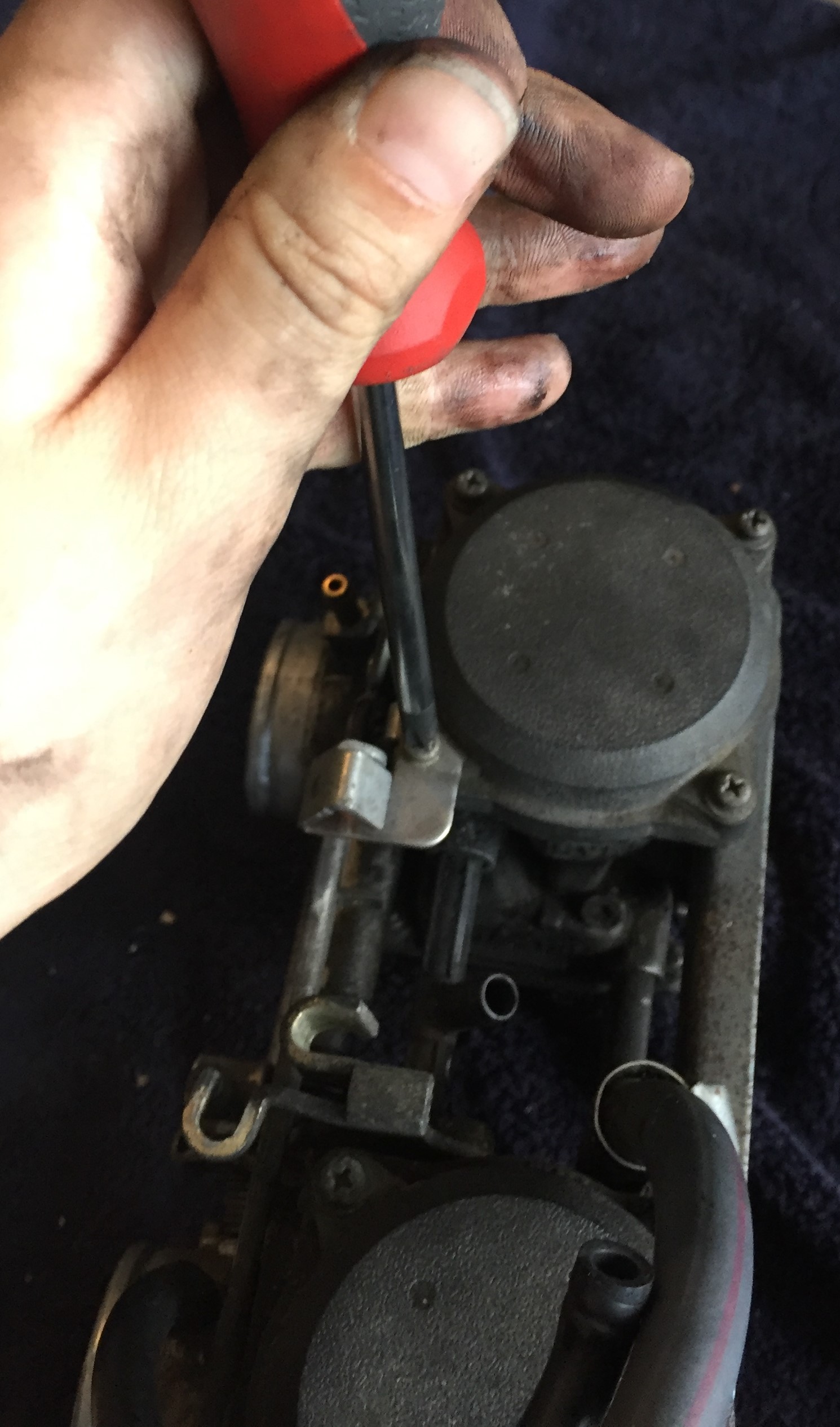 Once I finished spraying everything multiple times, I removed the main jet from its bath. I raised it to the light and made sure I could see cleanly through each hole, out to the other side of the jet. I then reinstalled the main jet in the carburetor. I closed up the bottom of the carburetor and sealed it.