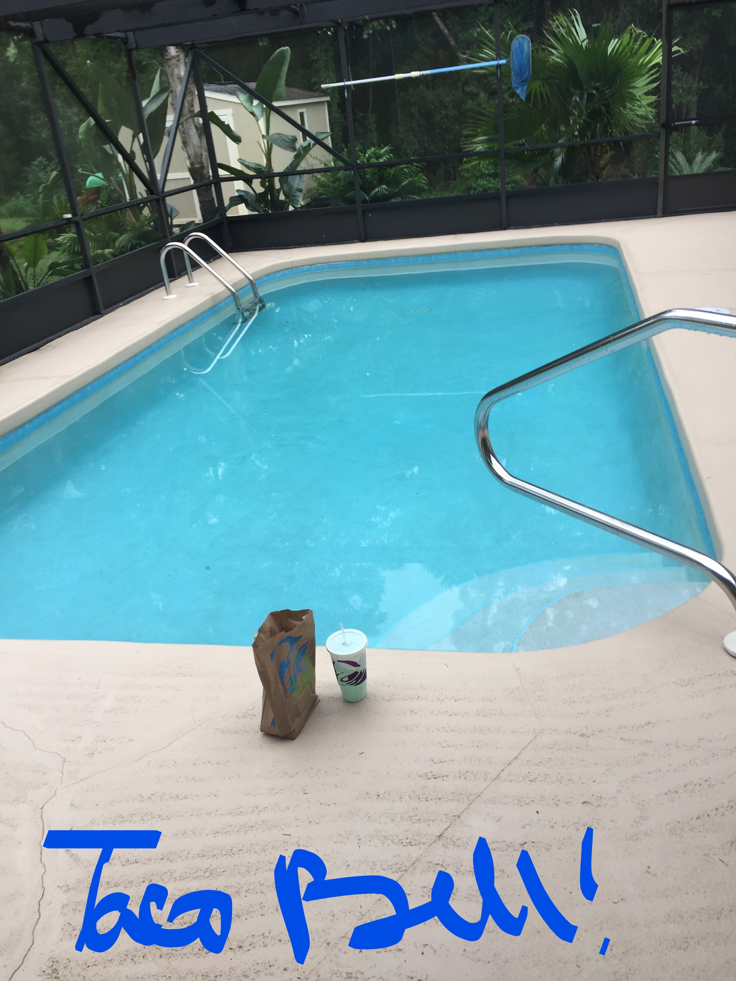 I got hungry, so I took a break to grab food and swim in the pool. Yeah, I know you're jealous.