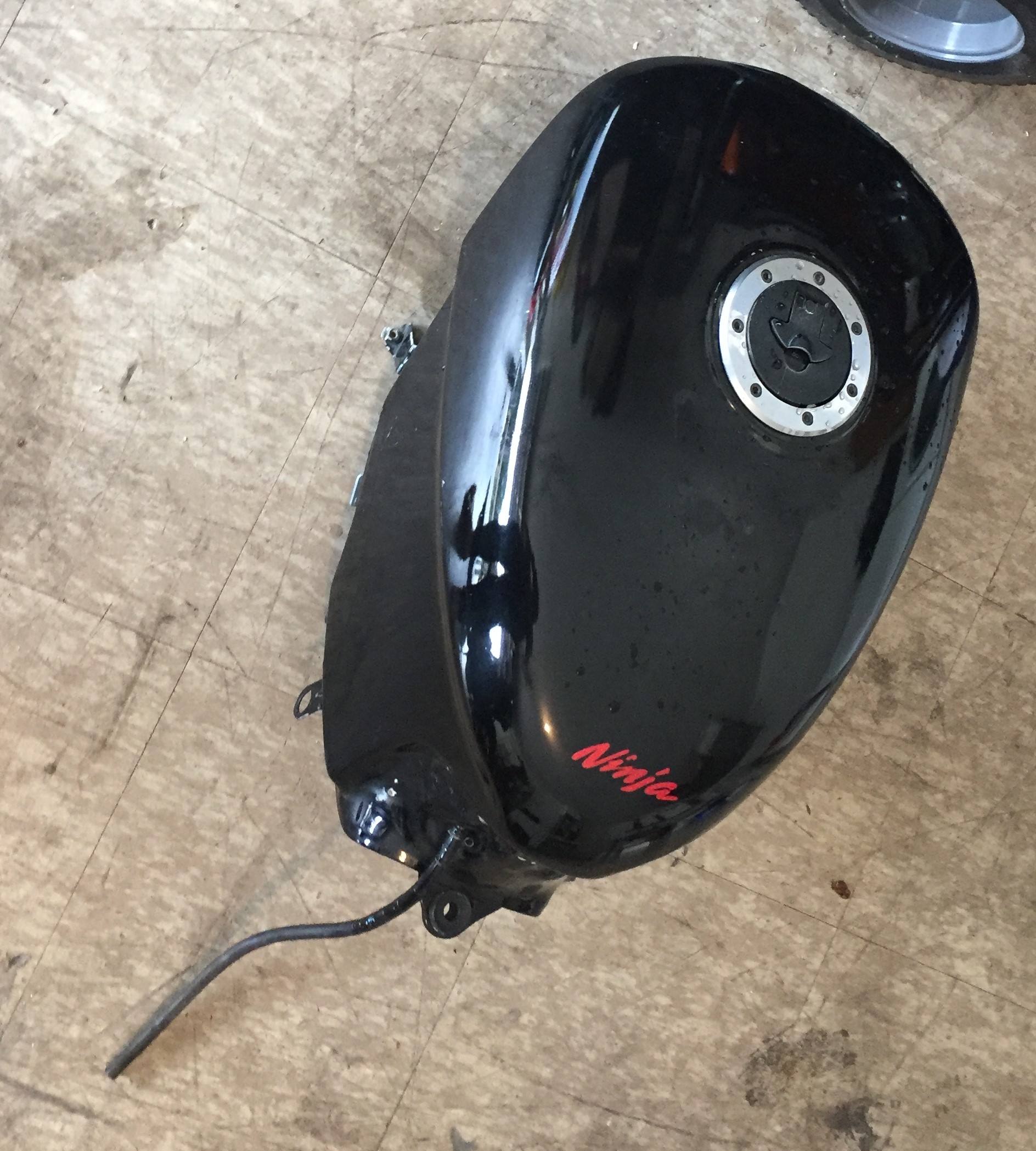 After turning the petcock off, I removed the side fairings from my bike so that they would not get further scratched up by the gas tank. In the past, I have been too lazy to remove them and my bike's aesthetic has suffered for it.