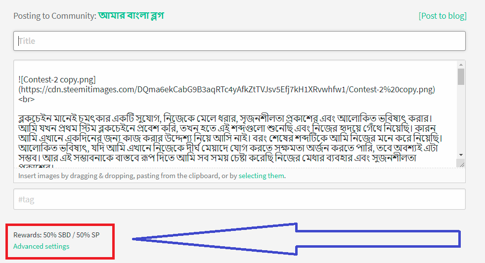 এখন আপনার পোষ্টটি শেষ করুন, টাইটেল এবং ট্যাগগুলো লিখুন, এরপর পোষ্ট এ ক্লিক করার মাধ্যমে প্রকাশ করুন। মনে রাখবেন আপনার পোষ্টটি একবার প্রকাশিত হয়ে গেলে, সেটিকে এডিট করে নতুনকরে বেনিফিশিয়ারি যোগ করা যাবে না। সুতরাং পোষ্টটি প্রকাশ করার পূর্বে অবশ্যই বেনিফিশিয়ারি যোগ করা হয়েছে এটা নিশ্চিত হতে হবে।