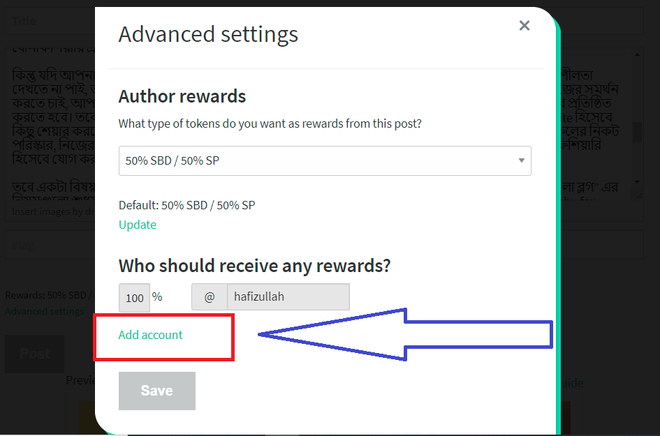 তবে একটা বিষয় অবশ্যই স্মরণে রাখতে হবে, @shy-fox এবং ‘আমার বাংলা ব্লগ’ দুটো আলাদা বিষয়। “আমার বাংলা ব্লগ” এর নিয়মগুলো শুধুমাত্র আমার বাংলা ব্লগ কিউরেশনের জন্য প্রযোজ্য হবে, এটা @shy-fox এর জন্য প্রযোজ্য না। @shy-fox শুধুমাত্র যোগ্যতম পোষ্টসমূহতে সাপোর্ট দিবে, যারা গুনগত মান ঠিক রাখবে এবং বেনিফিশিয়ারি যোগ করবে তাদের। তাহলে চলুন দেখি, কিভাবে বেনিফিশিয়ারি যোগ করতে হয়-