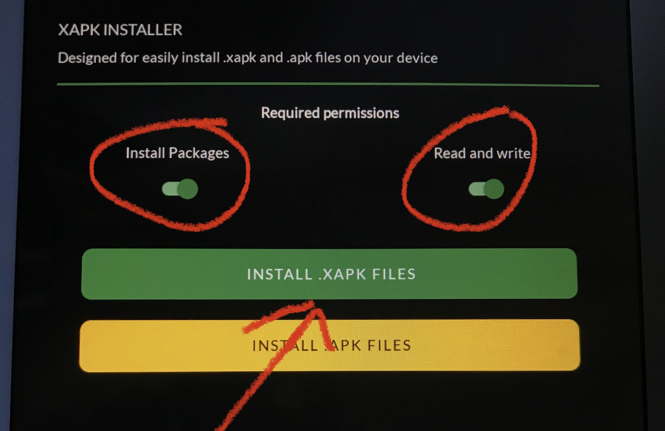 Pagkatapos ng installation Buksan ang app at i-on ang INSTALL PACKAGES and READ AND WRITE switch