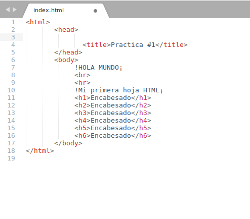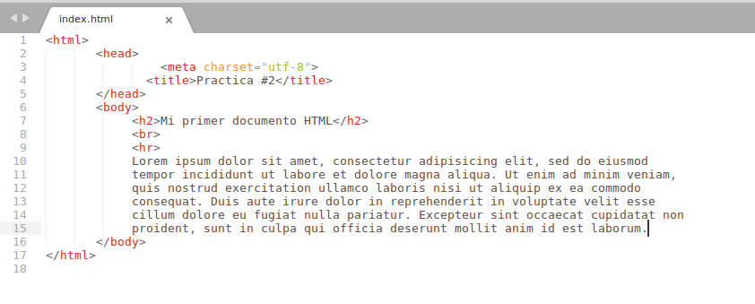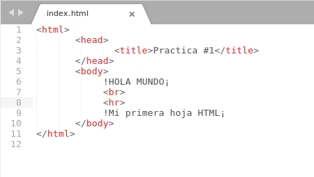 En el ejemplo de tutorial #1 vimos 4 etiquetas(html,head tittle y body). todas de la segunda forma. ya que tienen dos partes el inicio y el cierre. ahora veremos dos etiquetas que cumplen la primera forma < br> y < hr>, estas dos etiquetas no tienen cierre ya que su función es inmediata. la prime indica un salto de linea y la segunda dibuja una linea horizontal que atraviesa todo el largo de nuestro navegador.