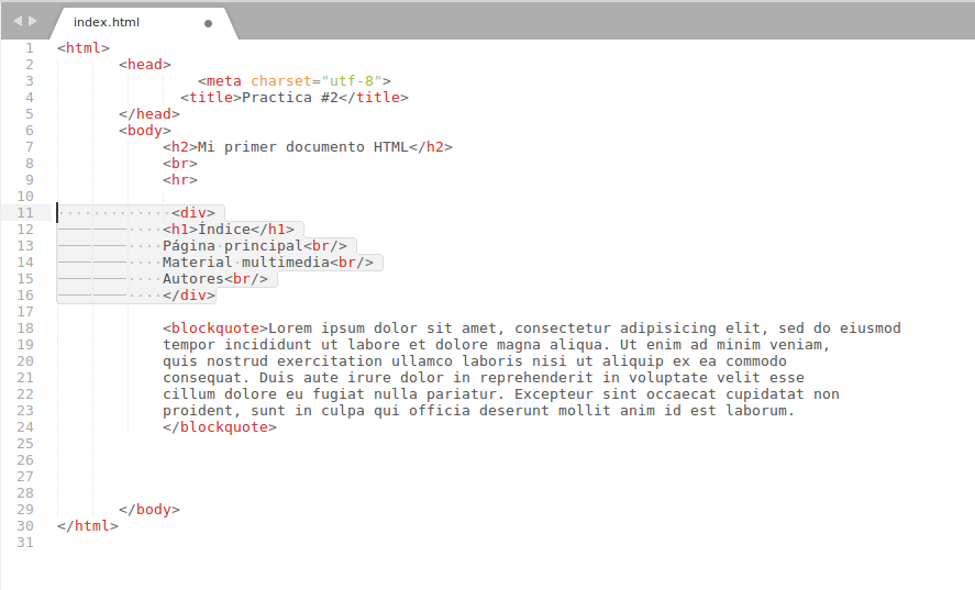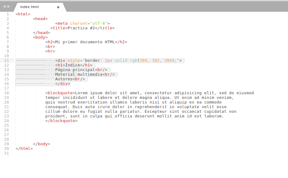 El uso de la etiqueta div es sencillo. integremoslo a nuestro documento HTTML: