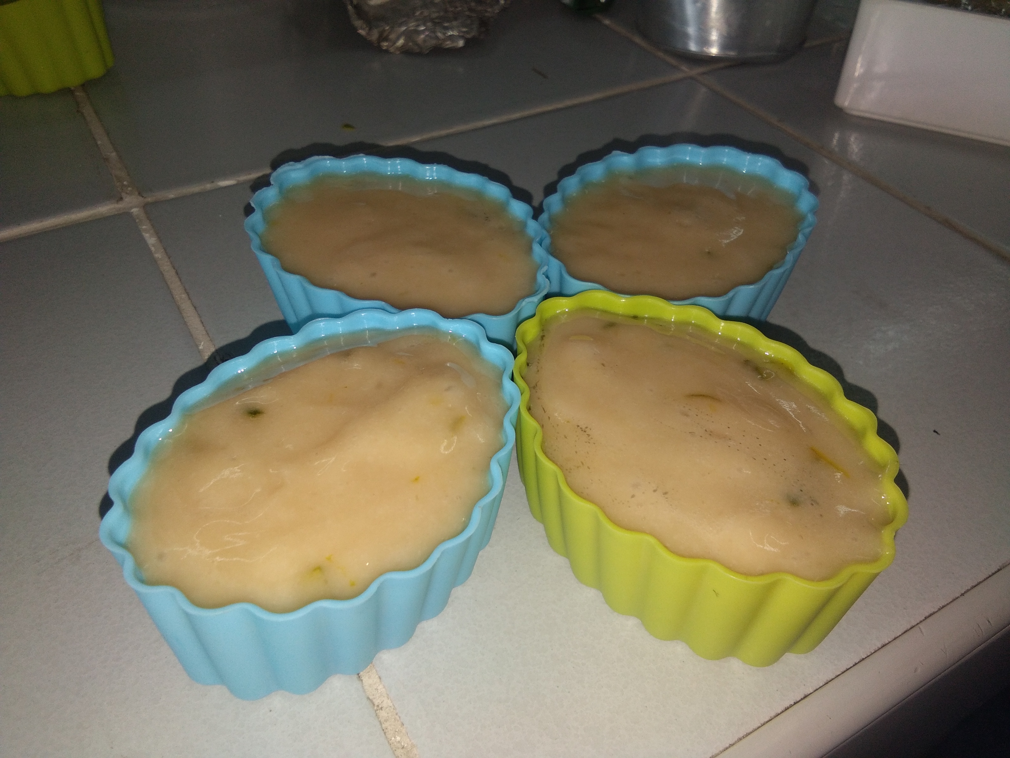 When mixed, pour the mixture in to mold. (We used silicon mold for our shampoo bar which is usually used for baking)