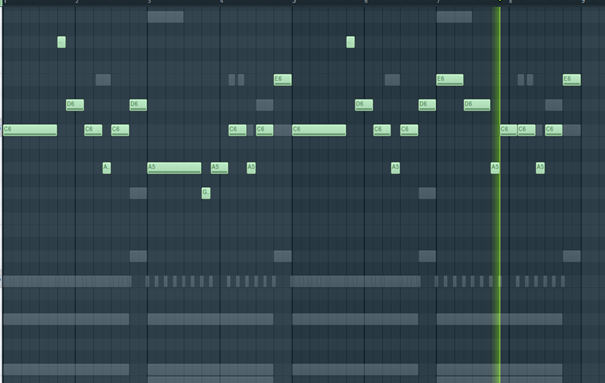 So to kick things off I made a little 8 bar loop and wrote the melody which I will be singing over it(played by the piano)