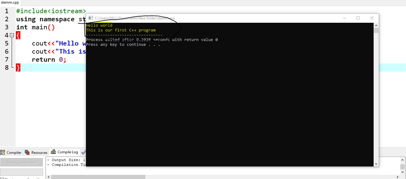 #include<iostream> using namespace std; int main() { cout<<"Hello world"<<endl; cout<<"This is our first C++ program "; return 0; }