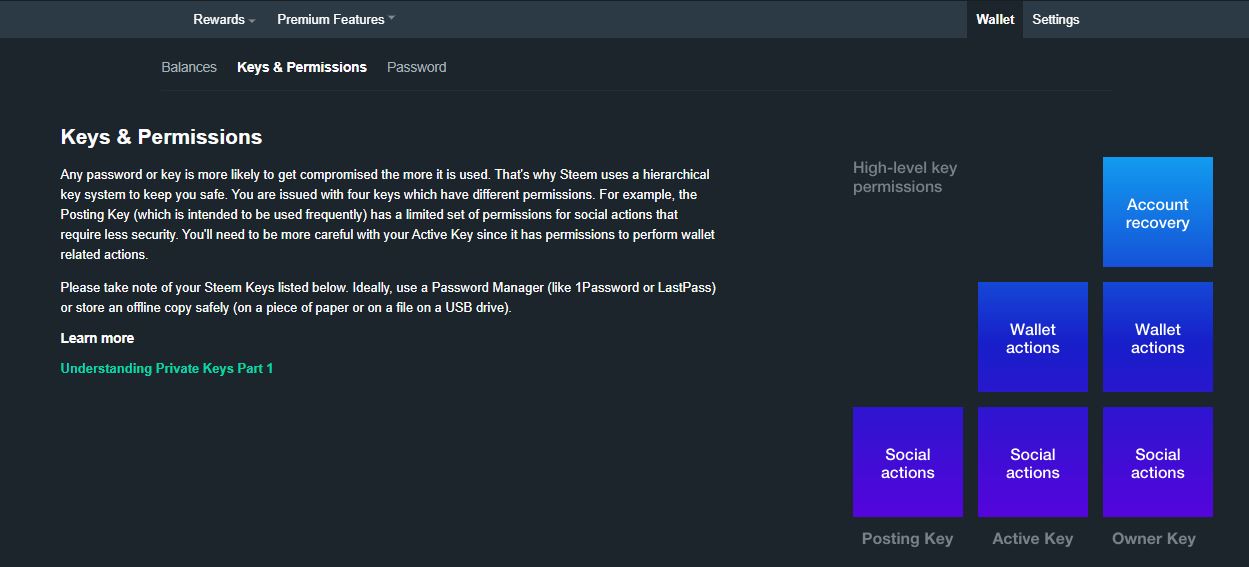 - Der Posting Key wird für alle normalen Aktionen wie zum Beispiel das Schreiben und Upvoten von Beiträgen verwendet.