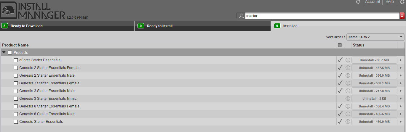 You can also use the Daz Install Manager which is external to Daz Studio and enables you to install and uninstall the products that are associated with your account. Yes, you will need to create an account at www.daz3d.com for any of this to work.