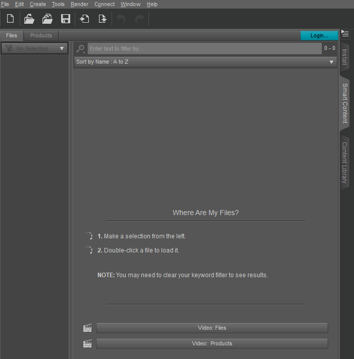 Now id you notice there is a LOGIN button here in Daz Studio. If you login you will have the option to install products using the Smart Connect method. Not all products, particularly older products or products you purchase/acquire from third party sites such as rendererotica can be installed via Smart Connect method. Third party sites you'll need to follow the instructions for their product. For older Daz official products you will install them using the Daz Install Manager.