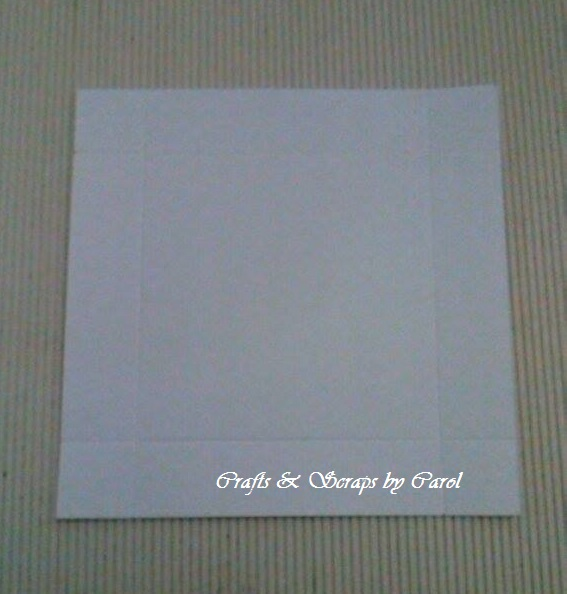 PASO 6: Vamos a elaborar la tapa de la cajita, para ello cortaremos un trozo de cartulina de 6 1/8" x 6 1/8" y marcaremos dobleces a 1" y 5 1/8", giramos la cartulina y marcamos nuevamente dobleces a 1" y 5 1/8"