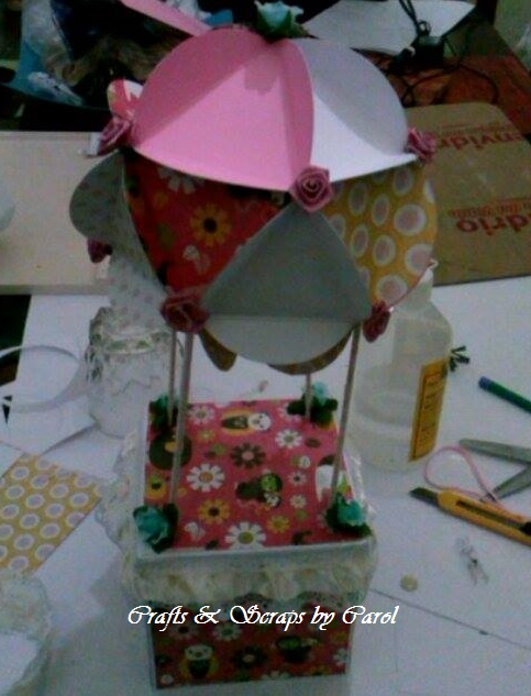 PASO 16: Decoren el globo a su gusto, yo puse unas rositas de tela en cada una de las uniones del globo.
