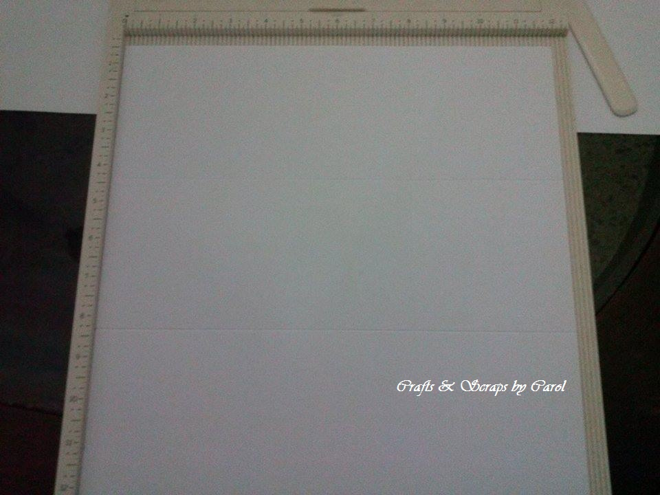 PASO 1: Vamos a tomar una pieza de cartulina unicolor ( o la cartulina corrugada si la tienen) de 12" x 12" y haremos dobleces a las 4" y 8", rotaremos la cartulina y haremos nuevamente pliegues a las 4" y 8", debe quedarles asi. En la página deben haber 9 cuadraditos.