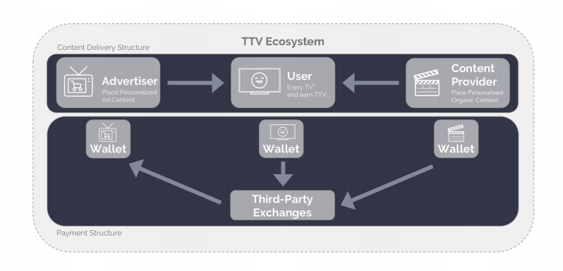 The TV-TWO Token(TTV) is an ERC20 token that administers the exchanged value between consumers, content providers and advertisers.