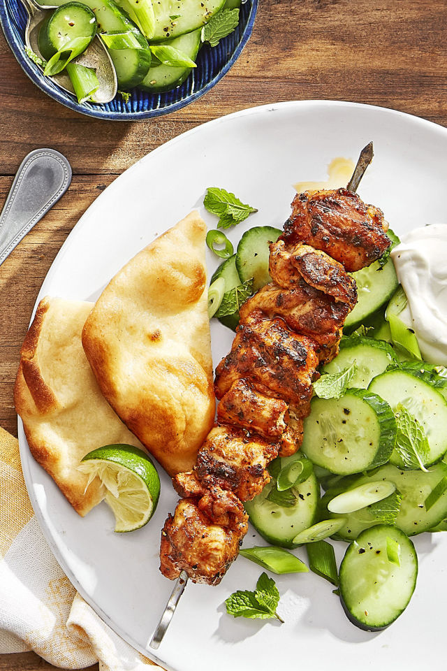 Grilled Spiced Chicken Skewers with Cucumber Salad