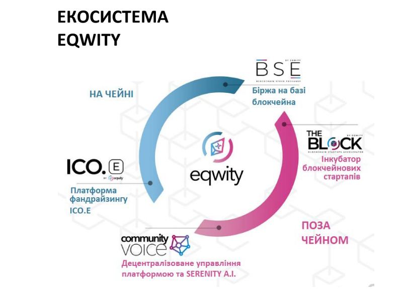 аморегулювання. Екосистема EQY включає нові концепції, пов'язані з рішеннями, які будуть розгортатися на різних етапах проекту. На першому етапі буде представлений новий стандарт ICO, який буде виправляти основні