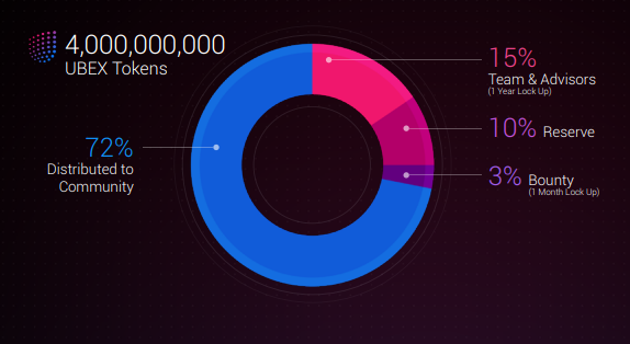 • 4,000,000,000 UBEX Tokens 72% Distributed to Community