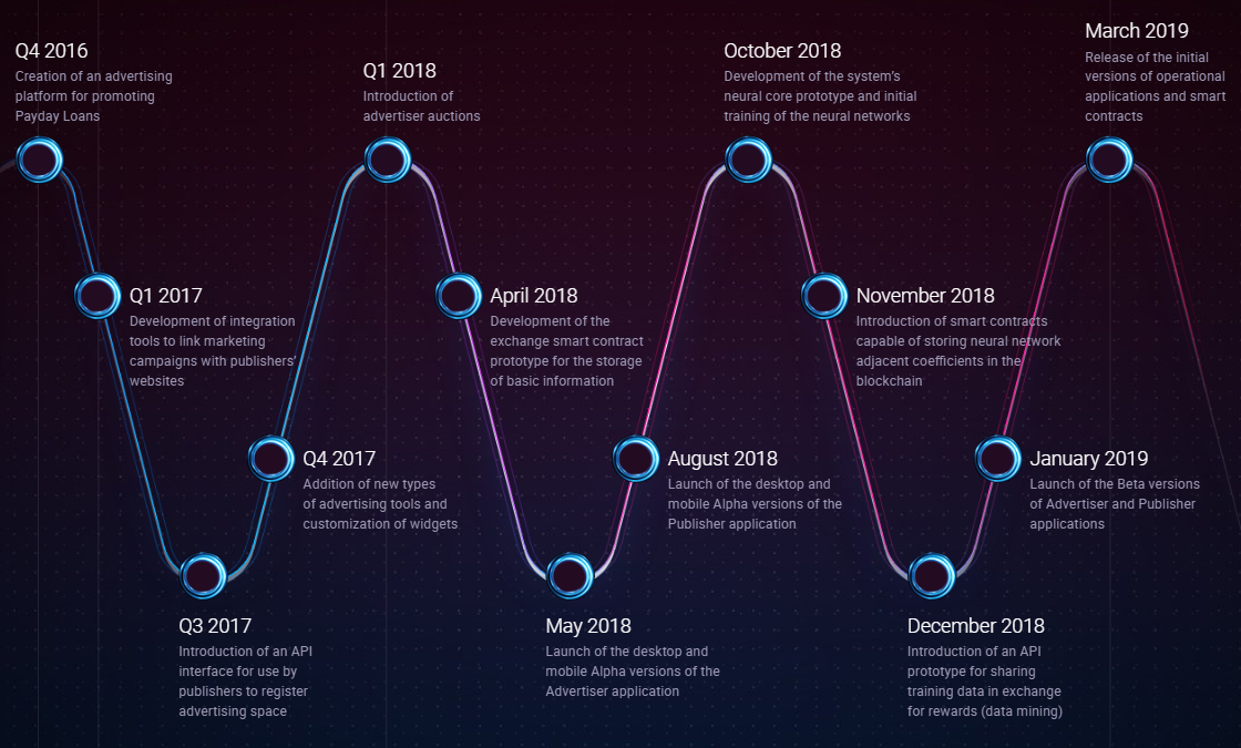 Proyek ini didasarkan pada pertukaran iklan yang memungkinkan pengiklan untuk menemukan slot iklan yang relevan dan menguntungkan secara finansial secara otomatis, dan penerbit untuk memonetisasi slot iklan gratis. Pasar potensial untuk proyek ini menunjukkan tingkat pertumbuhan yang tinggi ditambah Tim dan penasehat yang berpengalaman.
