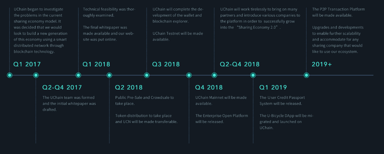 The user credit passport system, U-bicycle DApp(a bicycle sharing platform that also happens to be the first sharing service platform based on the blockchain) and the company's P2P transaction platform will all be released in 2019. You can read their Whitepaper
