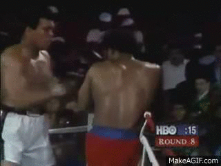 Muhammad Ali's 'against-all-odds' KO of George Foreman in Zaire (1974), with seconds left in the 8th Round: