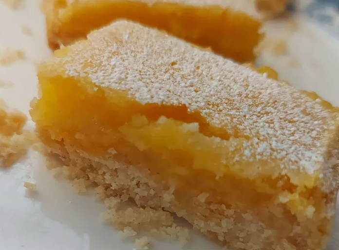 If you're like me, and don't exactly know what a lemon bar is, it has a shortbread crust, and a lemon curd topping :D