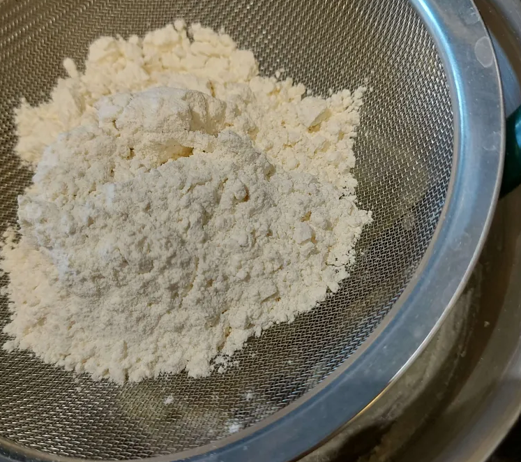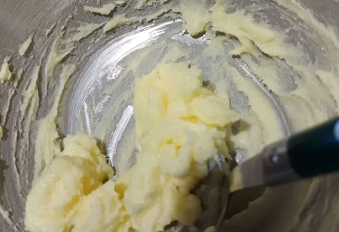 After the butter and sugar are completely creamed together, it was time to sift in the flour and salt, then combine! You need to rub it together with your fingers, and it's quite a dry mixture. Because I used my hands, I couldn't get a picture of the results of this step.