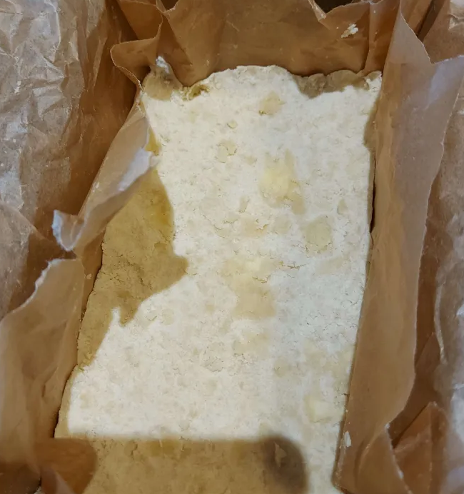 With that in the pan, the next step was cooking the shortbread crust! For this, the original instructions put it into the oven at 325 Fahrenheit, for 18-20 minutes. I use Celsius, which google said was about 162C.
