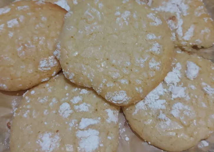 I recently tried to make these "lemon crinkle cookies", they seem to be American and are soft and fudgy in texture, and are covered in powdered sugar. The sugar is what gives them their cracked or 'crinkled' surface after baking.