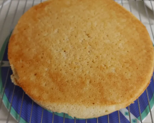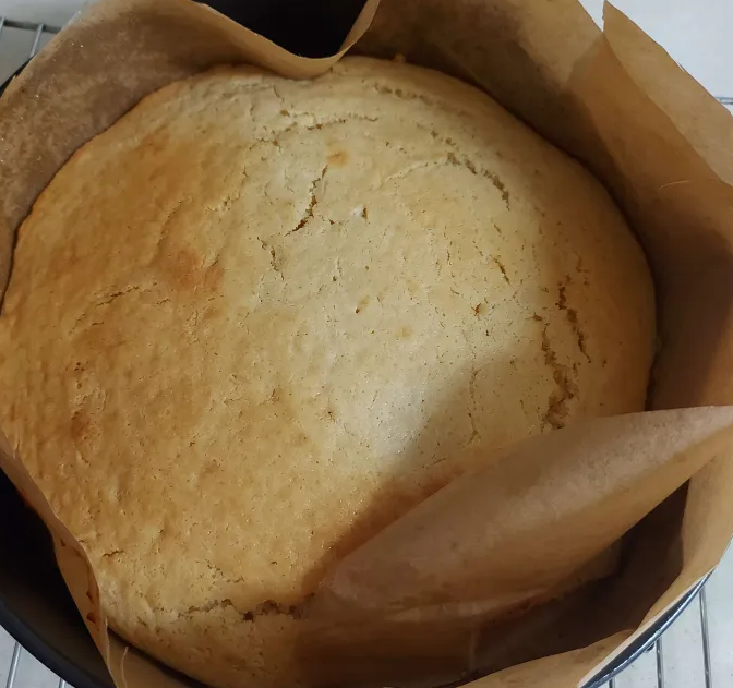 I baked the cake for about 30 minutes, at 160 degrees Celsius, it had a lovely golden top.