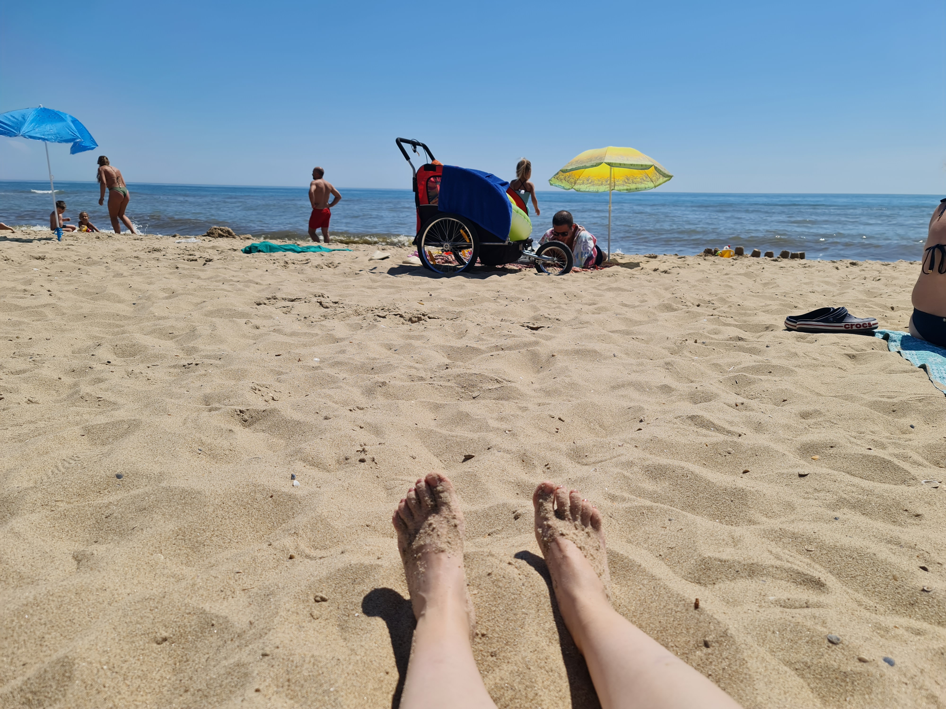 На жаль, ми з Чорним морем не сильно наобіймалися, бо якраз відбувався апвелінг — природне явище, коли до берегів прибуває вода з дна, а вона чи не крижана. Я лише двічі в море занурювалася за 5 днів, виходить: перший раз — подібно до обряду на Водохреща (на 5-10 секунд, і швидко вибігла), другий раз — перед самим від'їздом, коли вода вже більш-менш стала теплою (градусів 14-16 по відчуттях).