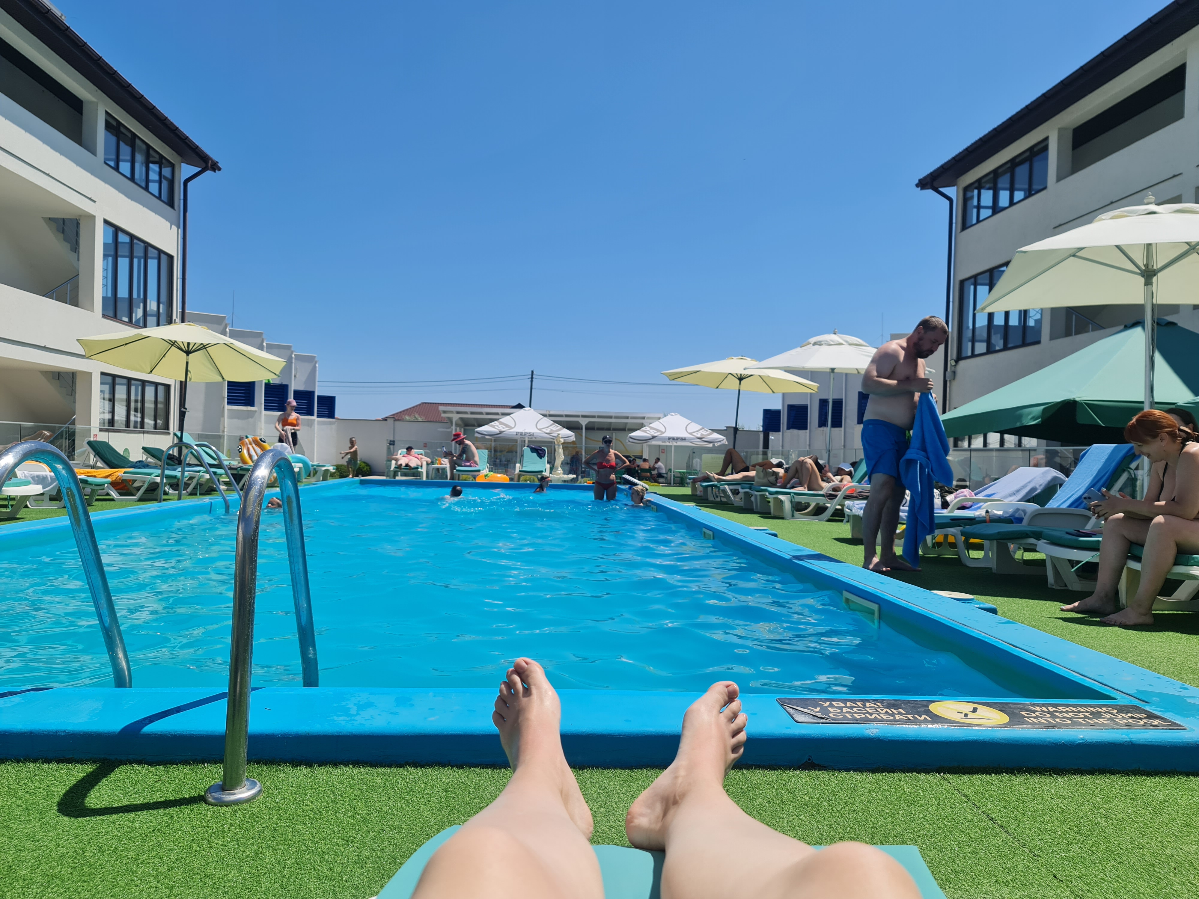 Зате я досхочу наплавалася в басейнах, а що було робити. В нас при готелі був один невеличкий. Але ще ми ми їздили на цілий день до готелю моєї колеги (*вхід на територію: 600 грн/ос.), а там було аж 4 басейни, джакузі. Правда, для дорослих — 2. Ще 2 для діток. Джакузі спільне. Якщо плануєте в Кароліно-Бугаз, запитайте мене про назву цього готелю, поділюся. 🙂