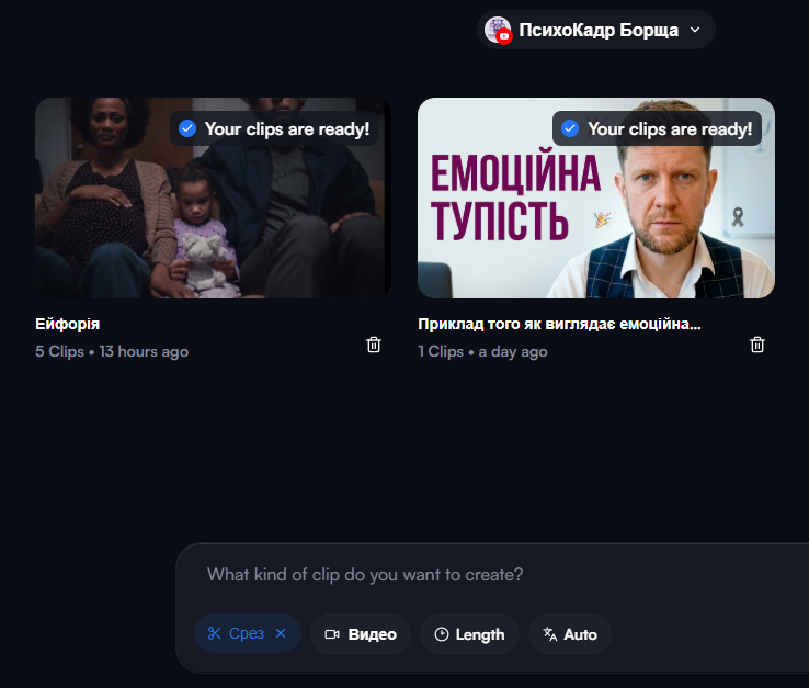 Якщо я правильно зрозумів, то можна закинути будь-яке відео. Не важливо ваше чи просто посилання на інше і штучний інтелект (який роками заточувався під ютуб) або на свою думку виділить цікаві відрізків з яких зробить коротке відео, або ж можна задати налаштування самому, вручну для того щоб виокремити конкретний потрібний вам відрізок відео. На мою думку це просто неймовірно.