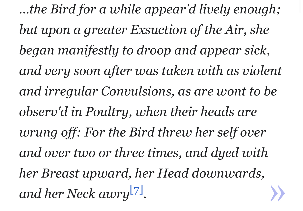 Перекладати запис не стану, згодом експеримент став популярним, його проводили публічно і він ліг в сюжет картини «An Experiment on a Bird in the Air Pump». Уважні читачі мають здогадається, про що експеримент, без перекладу.