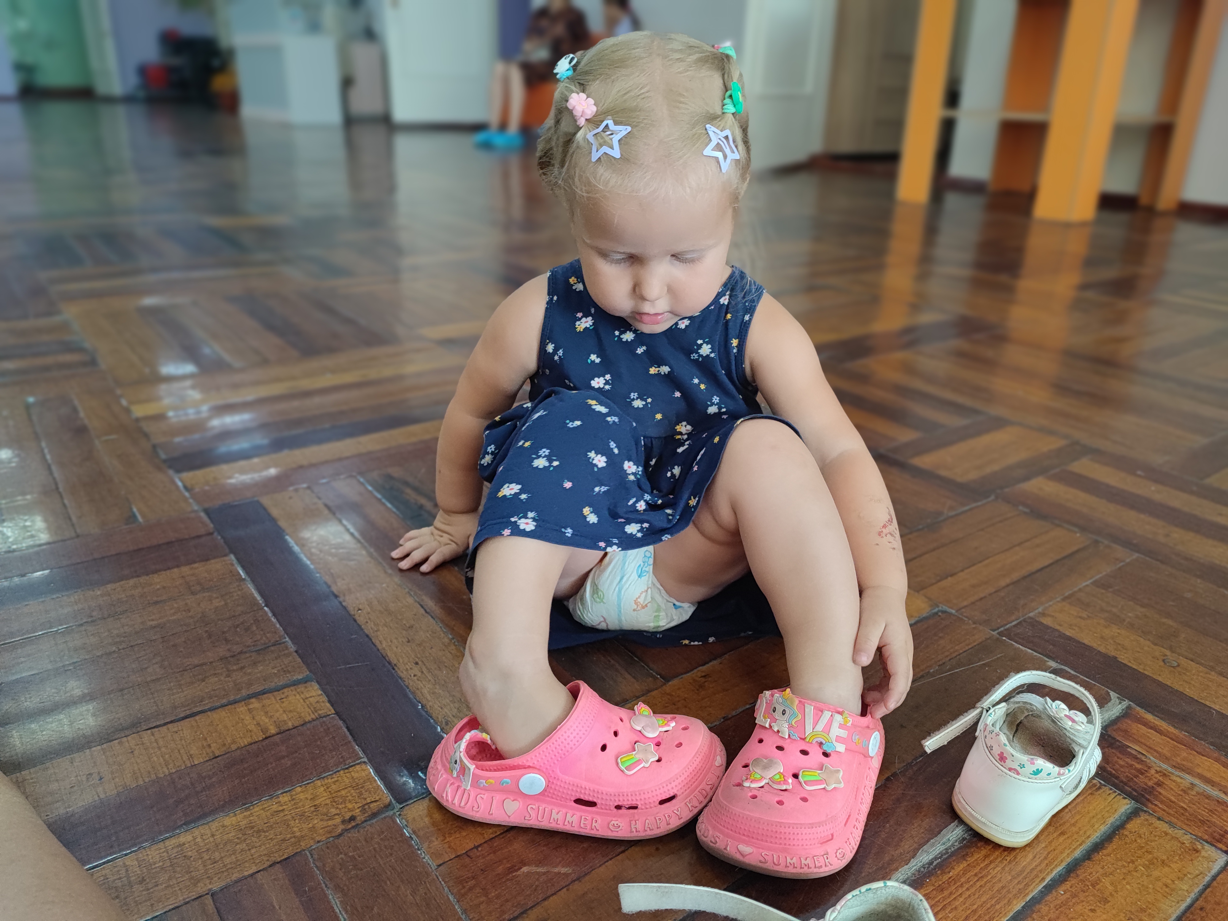 На фізичні вправи Танюша тепер біжить з радістю. Лікар Антон лише відчиняє двері і кличе діток- Танюшка вже забігає до кімнати навіть не помахавши мені бувай😂 Це після минулої п'ятниці. Не знаю що вони там робили, але Танюшка розповіла що вони гралися з великим м'ячем і їм було дуже весело. Ну що весело я чула, дуже гучно і дзвінко вони усі сміялися 🤣 А то раніше вона все одно чомусь не хотіла туди йти, а тепер залітає як літачок 😂